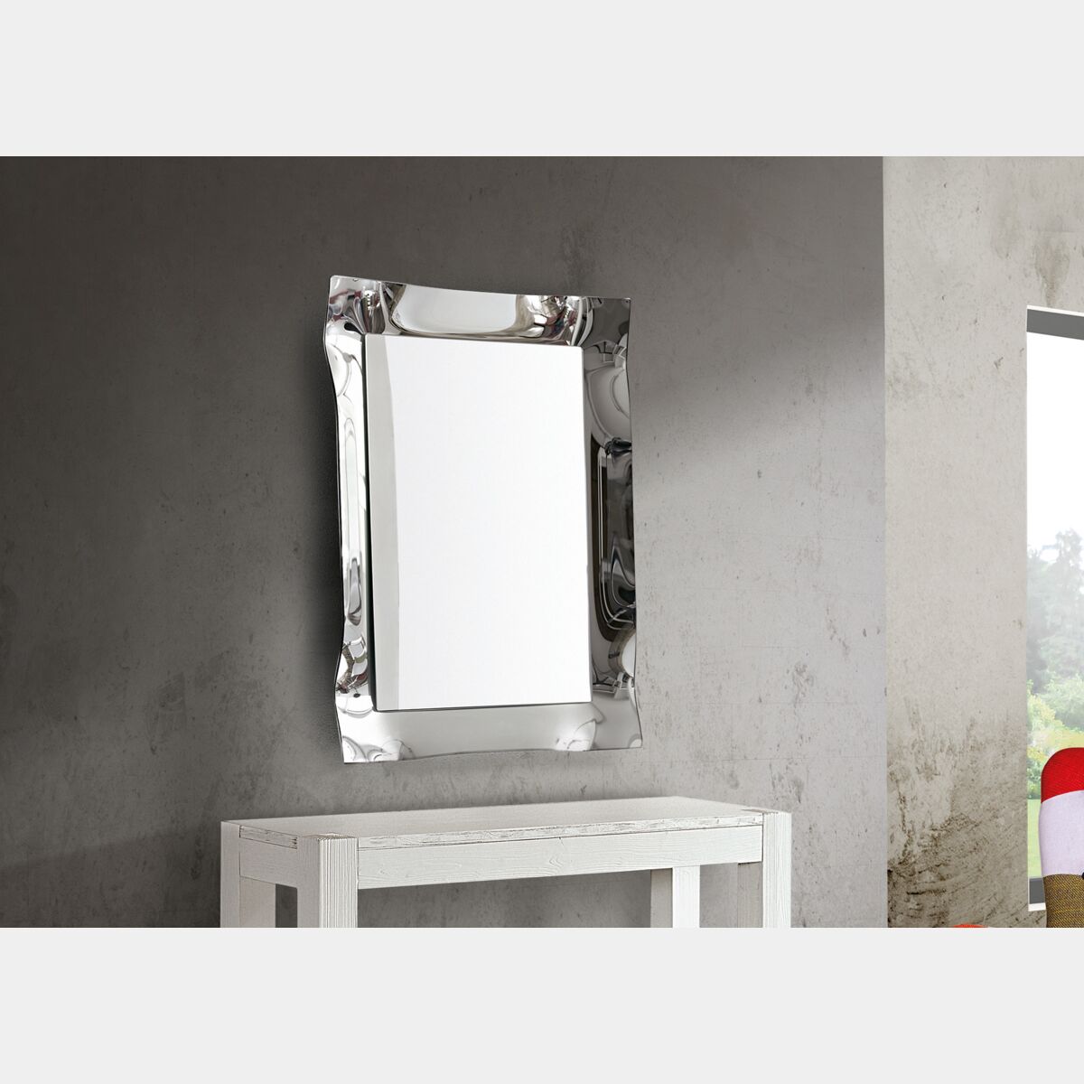 Particolare ed elegante specchiera rettangolare color argento: ottima soluzione da integrare con una consolle sia classica che moderna