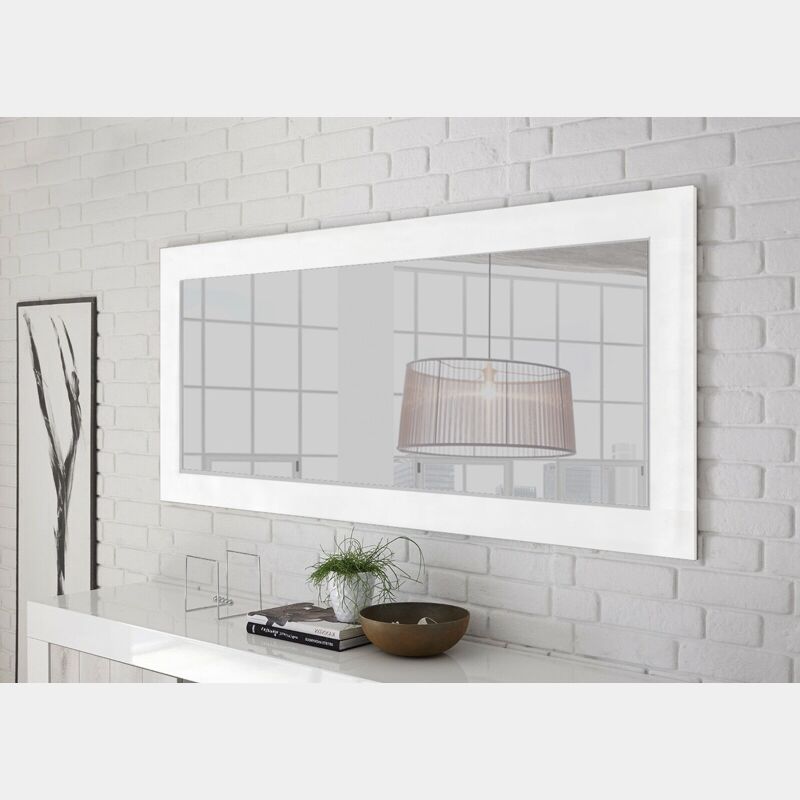 Specchiera dal design moderno con cornice in finitura bianca lucida. Una specchiera utile da posizionare sopra a madie moderne oppure in sale da pranzo o bagni.