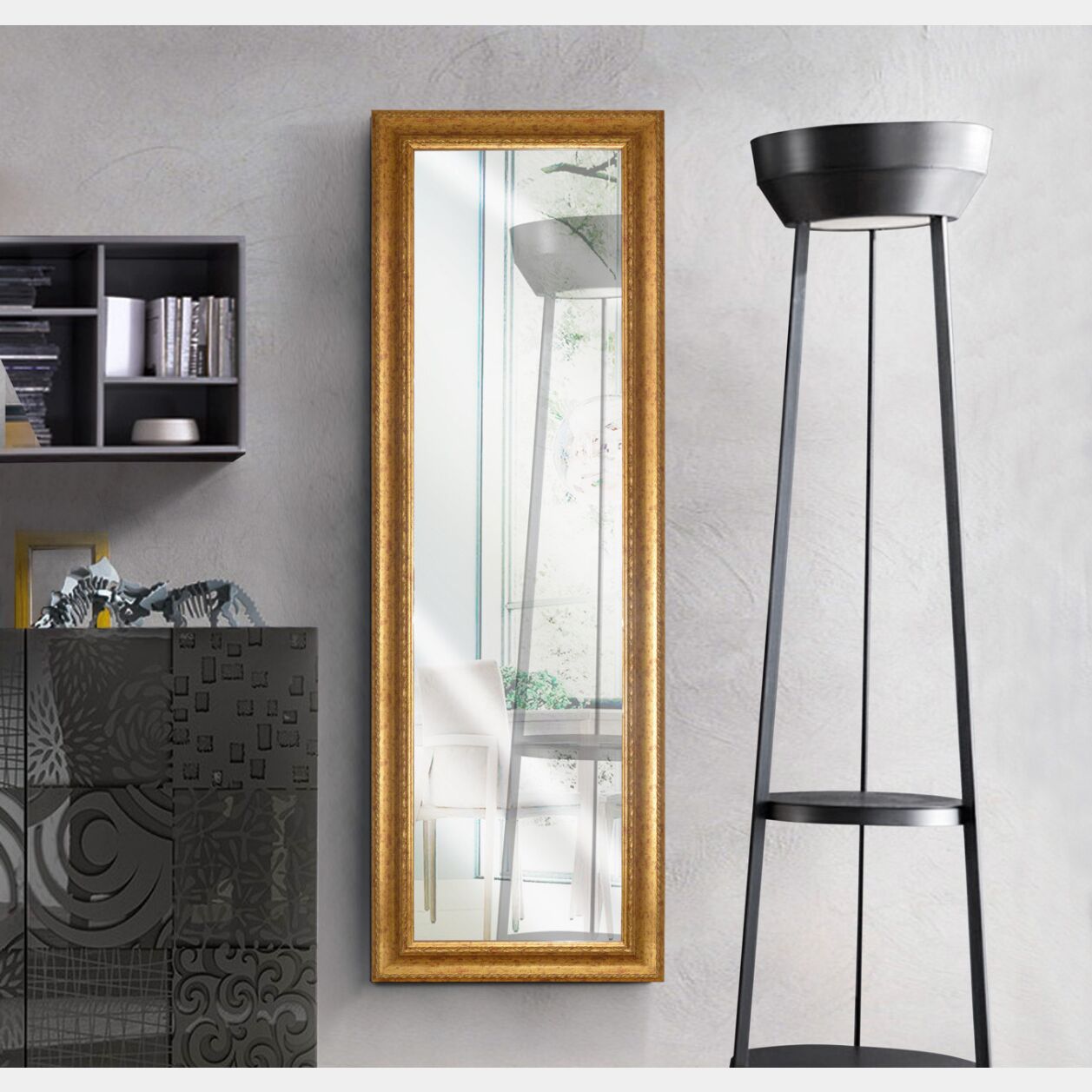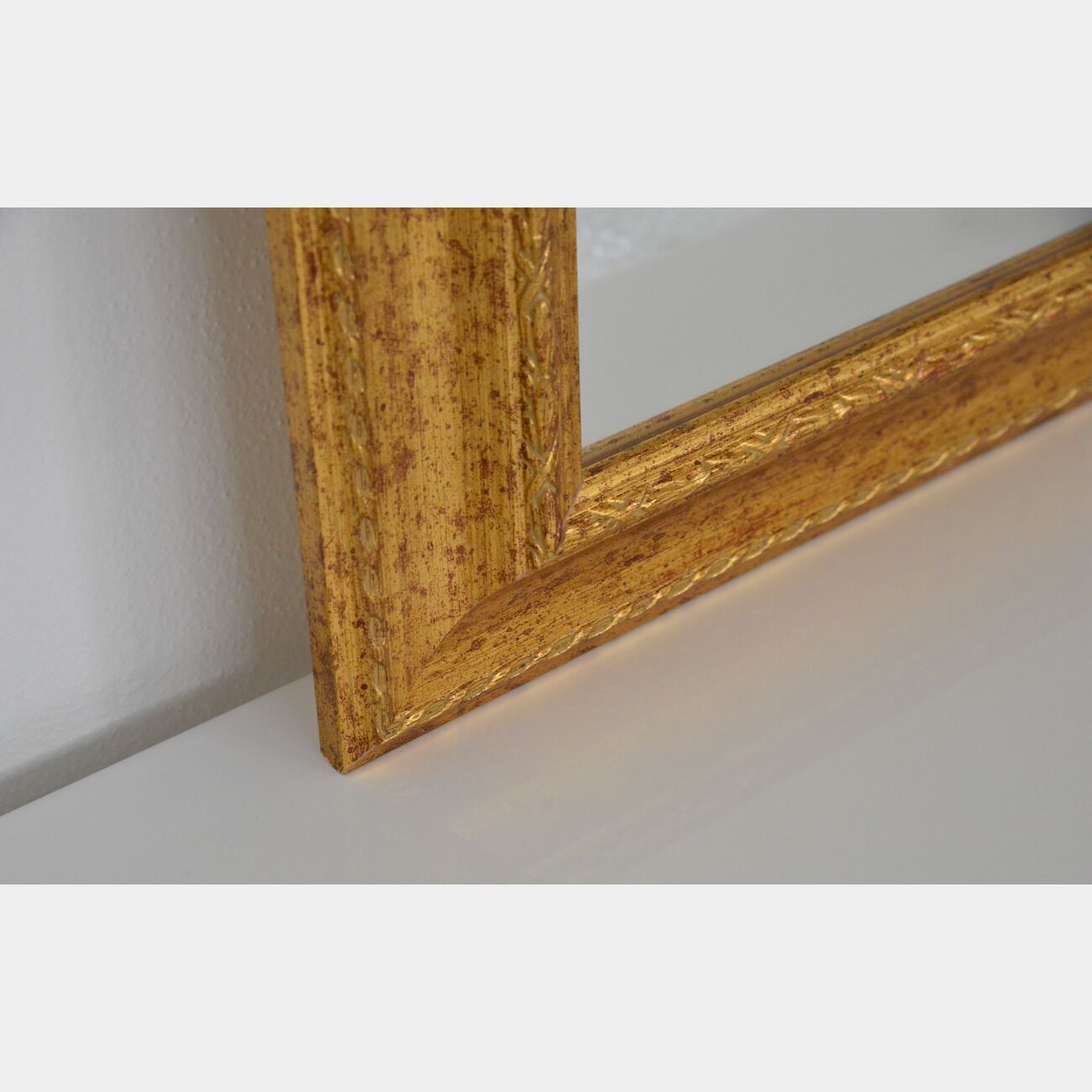 Particolare ed elegante specchiera rettangolare color Oro: ottima soluzione da integrare con una consolle sia classica che moderna