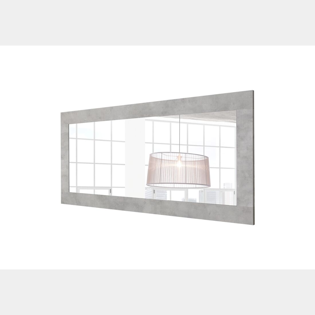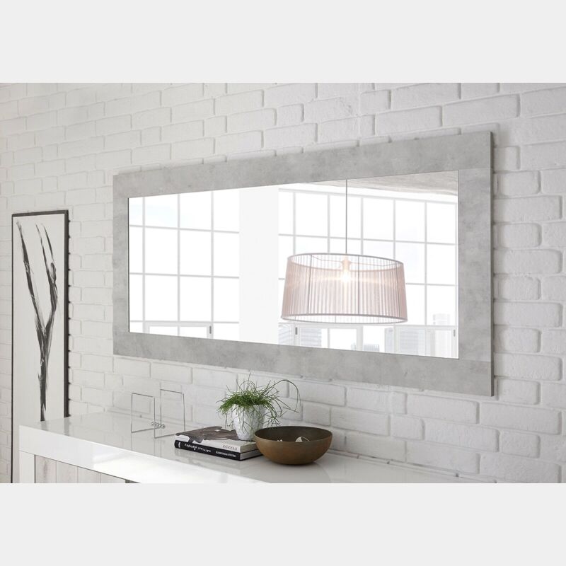 Specchiera dal design moderno con cornice in finitura cemento. Una specchiera utile da posizionare sopra a madie moderne oppure in sale da pranzo o bagni.