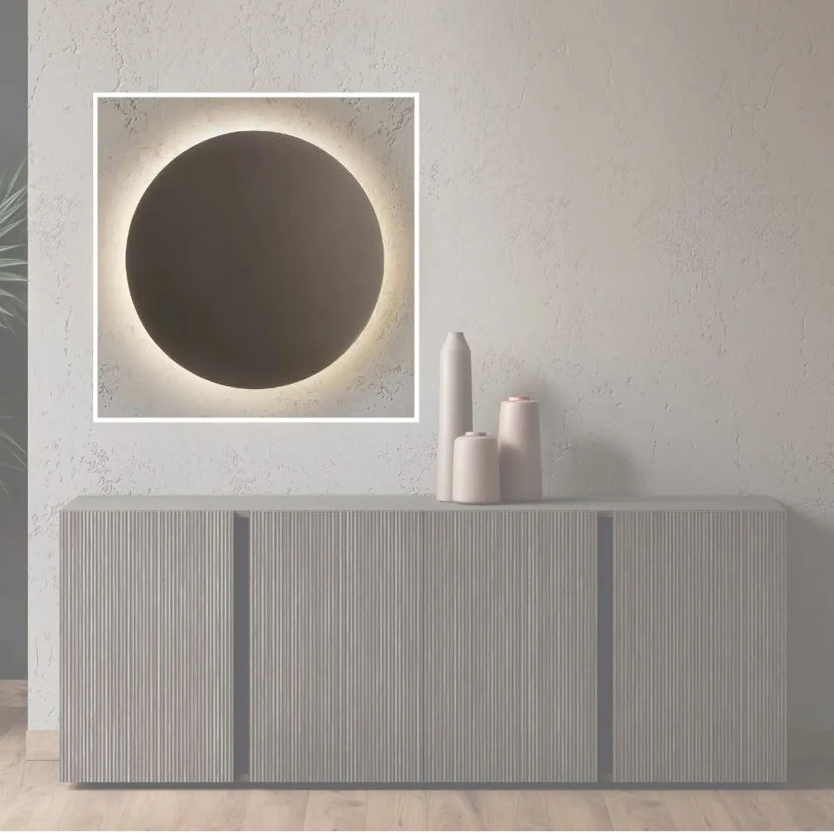 Lo specchio ha una forma perfettamente circolare, che crea un punto focale armonioso e accogliente nell'ambiente.