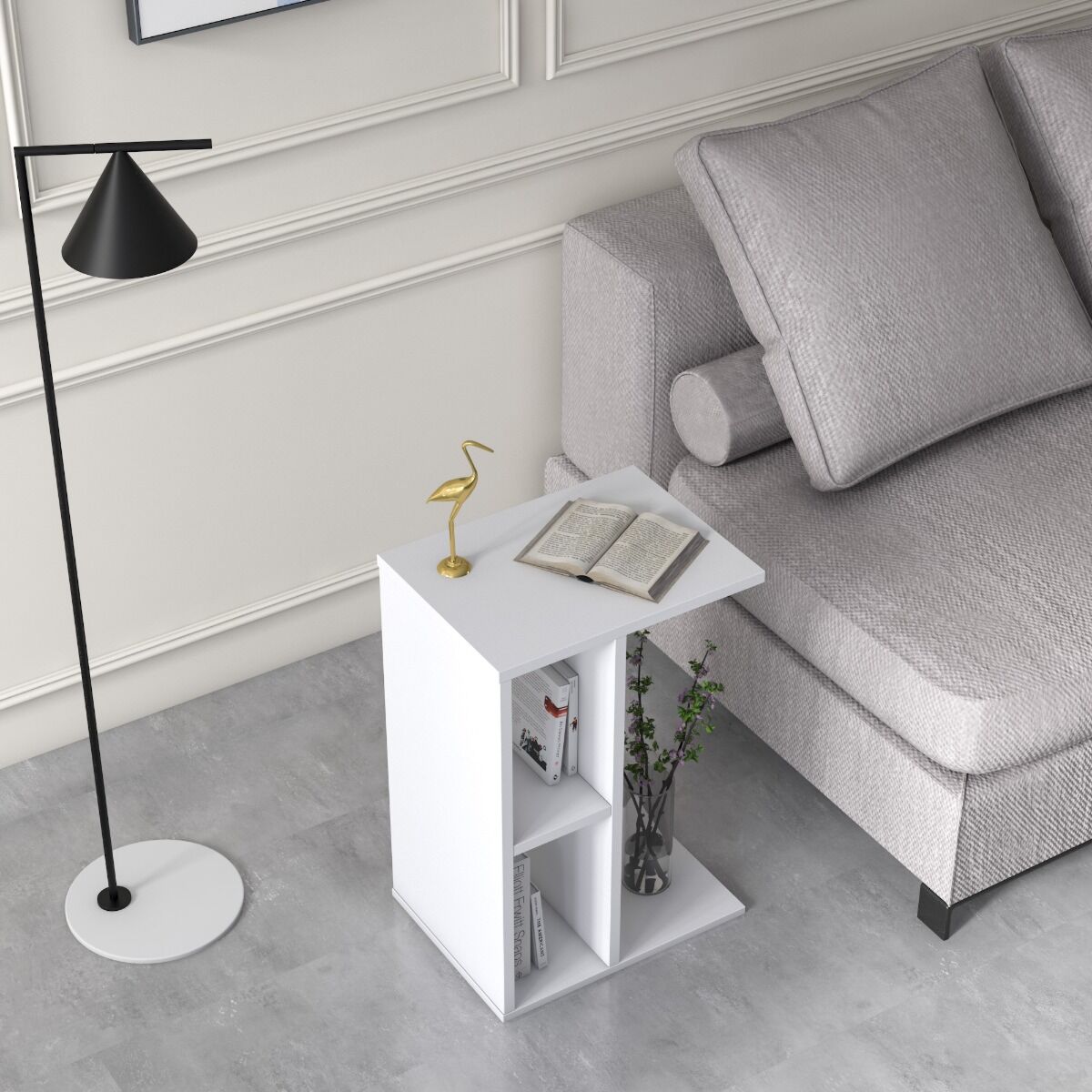 La sua finitura in bianco dona luce all'ambiente rendendolo accogliente e luminoso, il tavolino è disponibile anche nella versione in Rovere e noce.