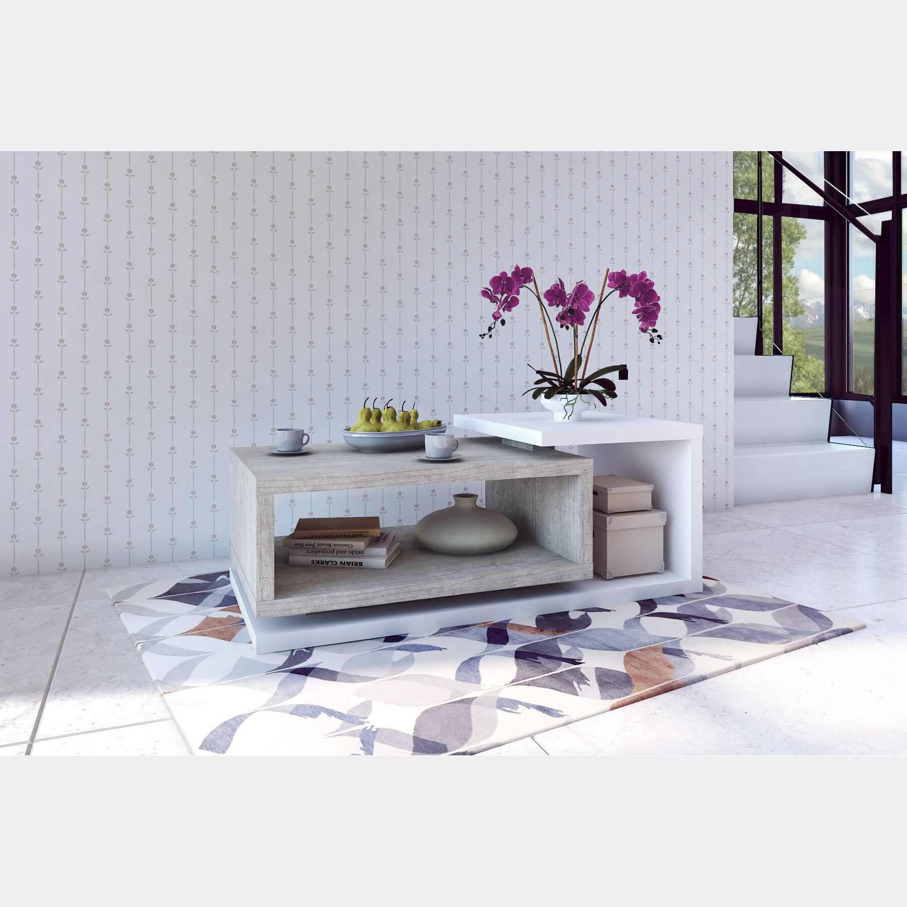 Tavolino basso da salotto, finitura bianco opaco e cemento, che stupirà tutti i vostri ospiti e renderà lo stile del vostro salotto unico nel suo genere.