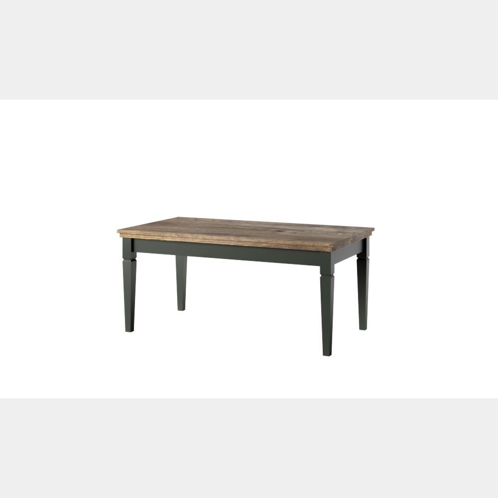 Tavolino basso da salotto L.110, finitura verde scuro e quercia
