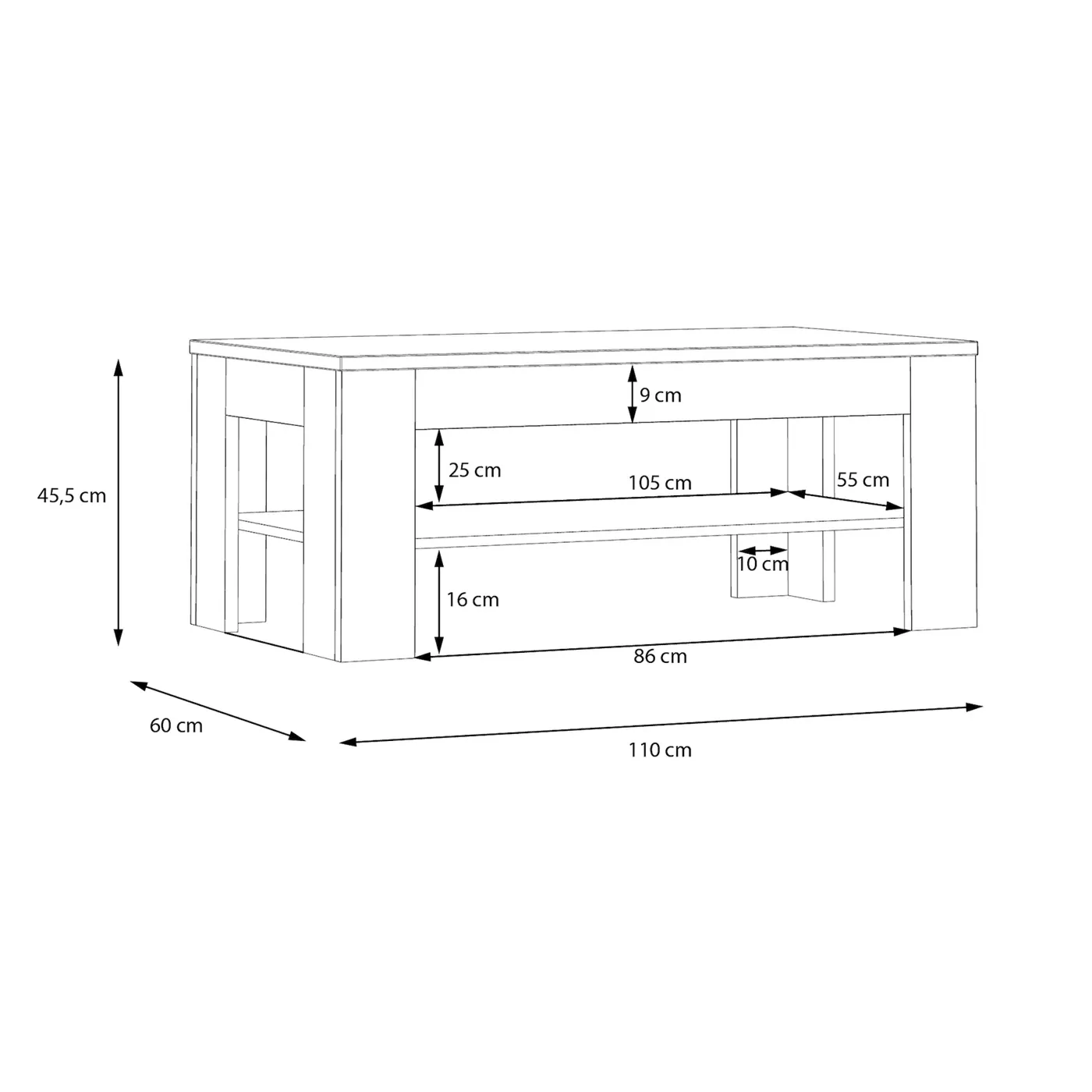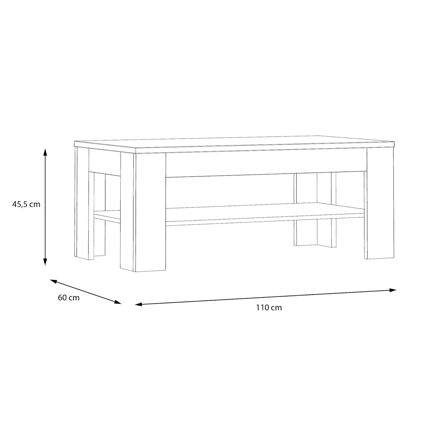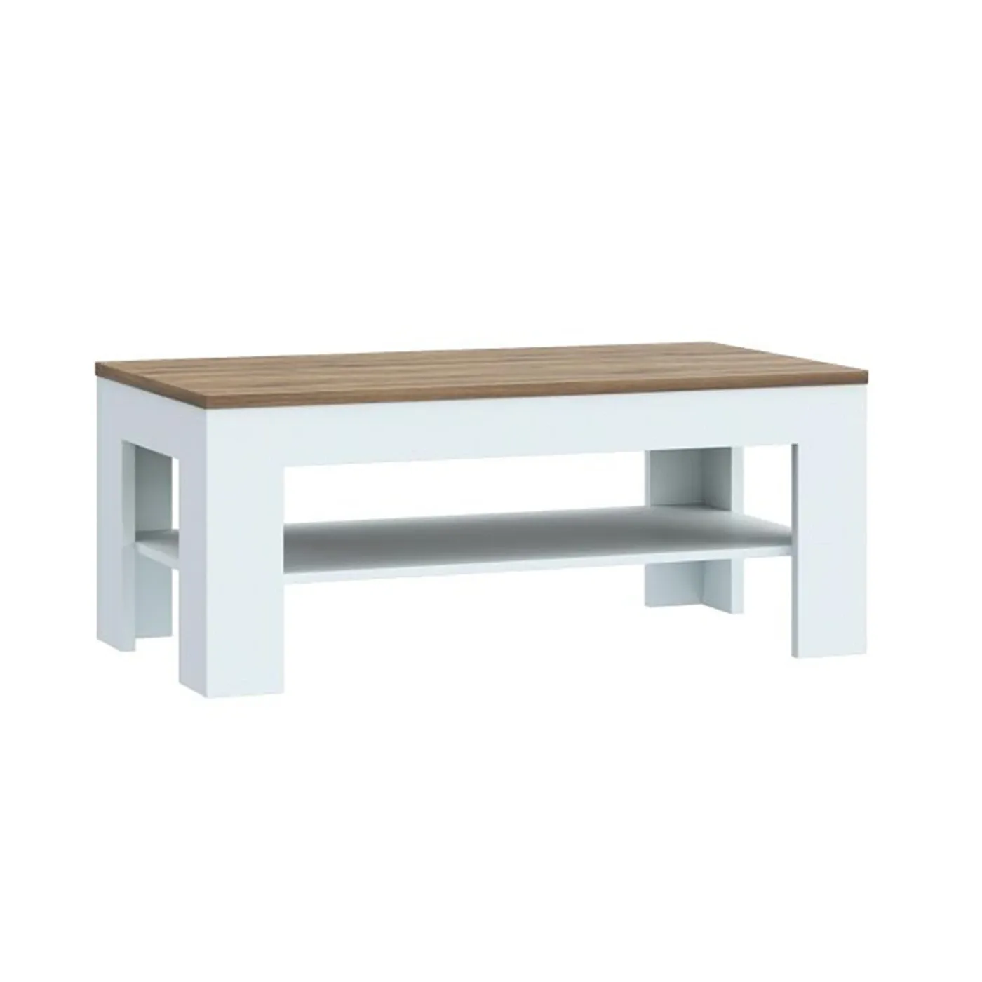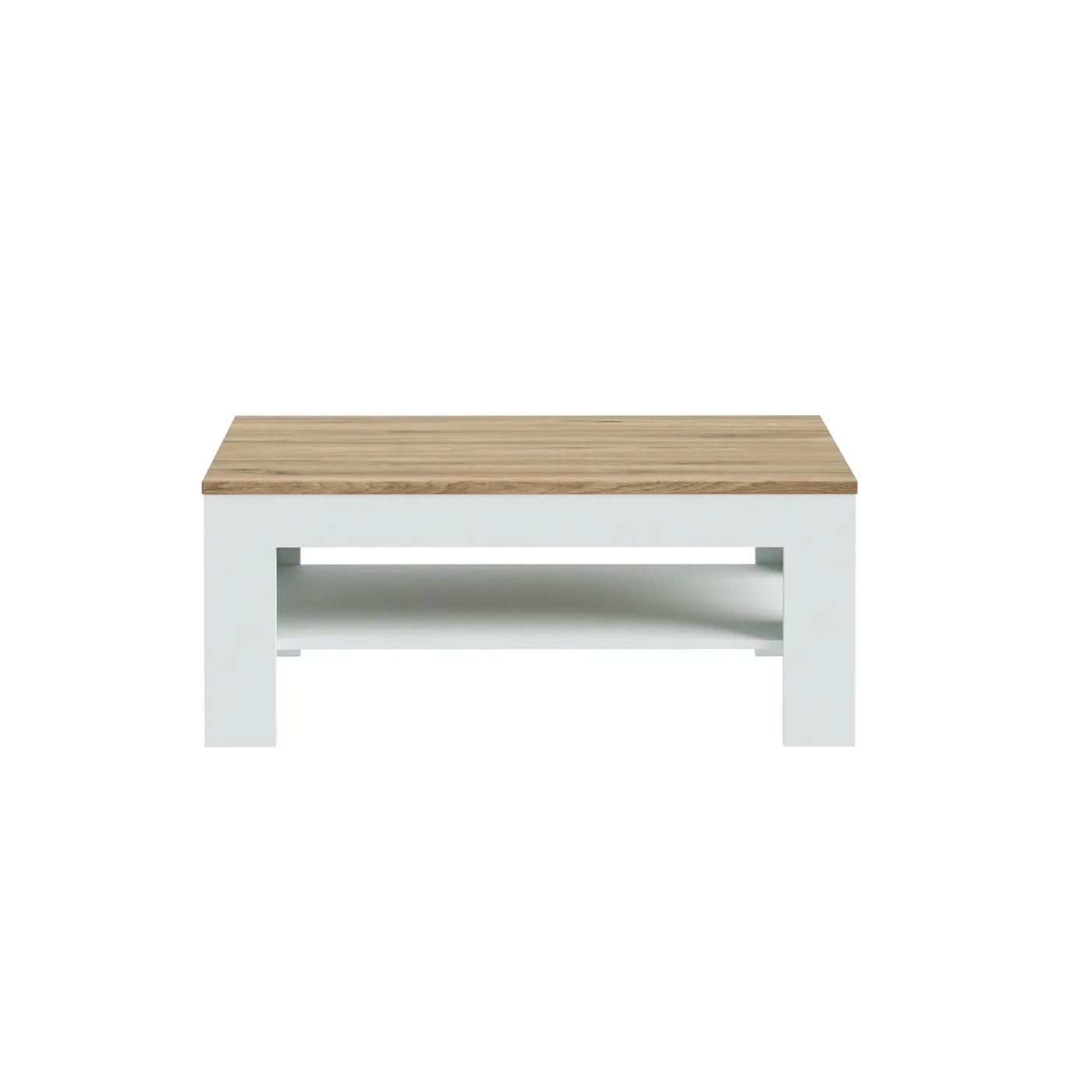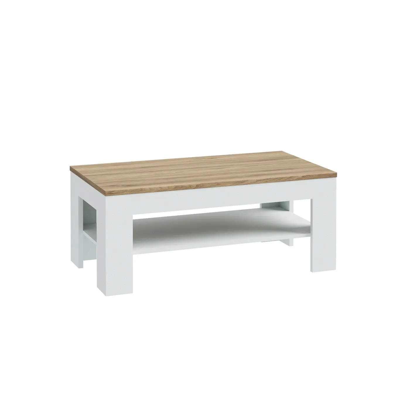 Tavolino moderno da caffè, 110x46x60 h cm, in finitura Bianco gesso e Rovere Valencia