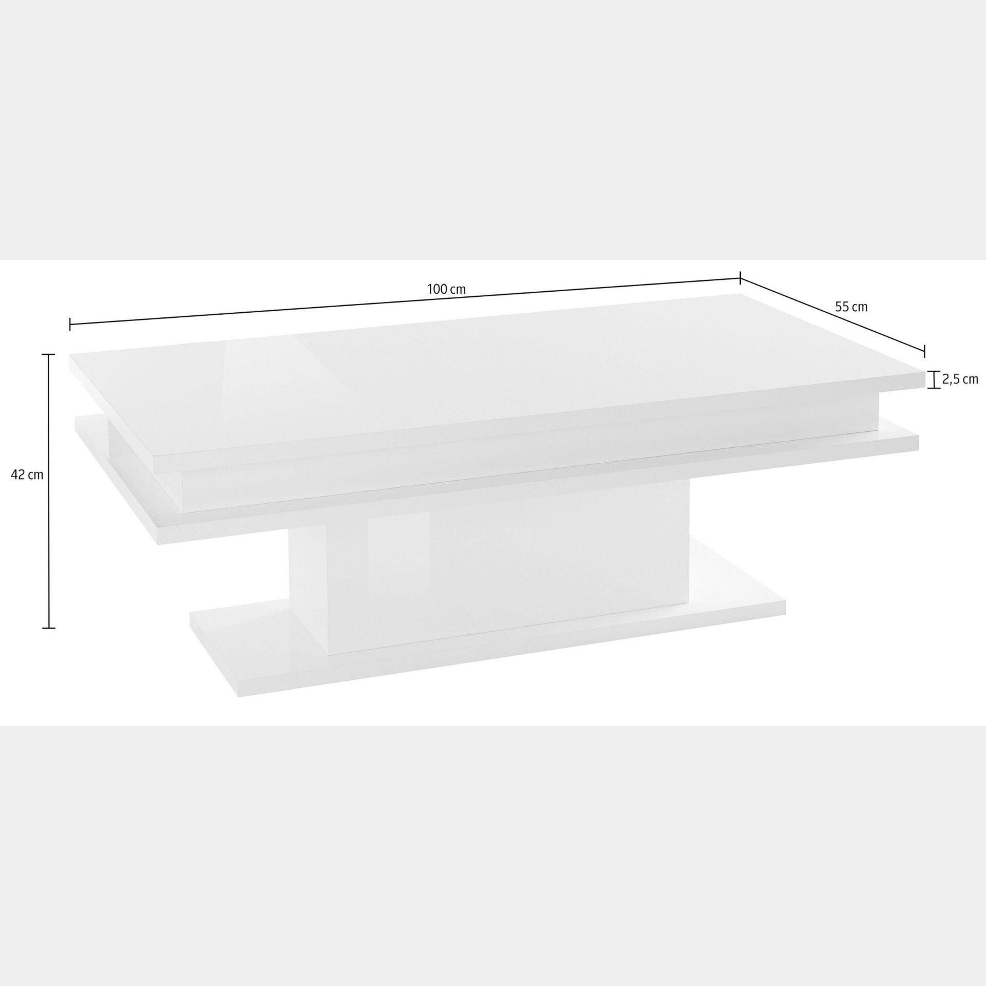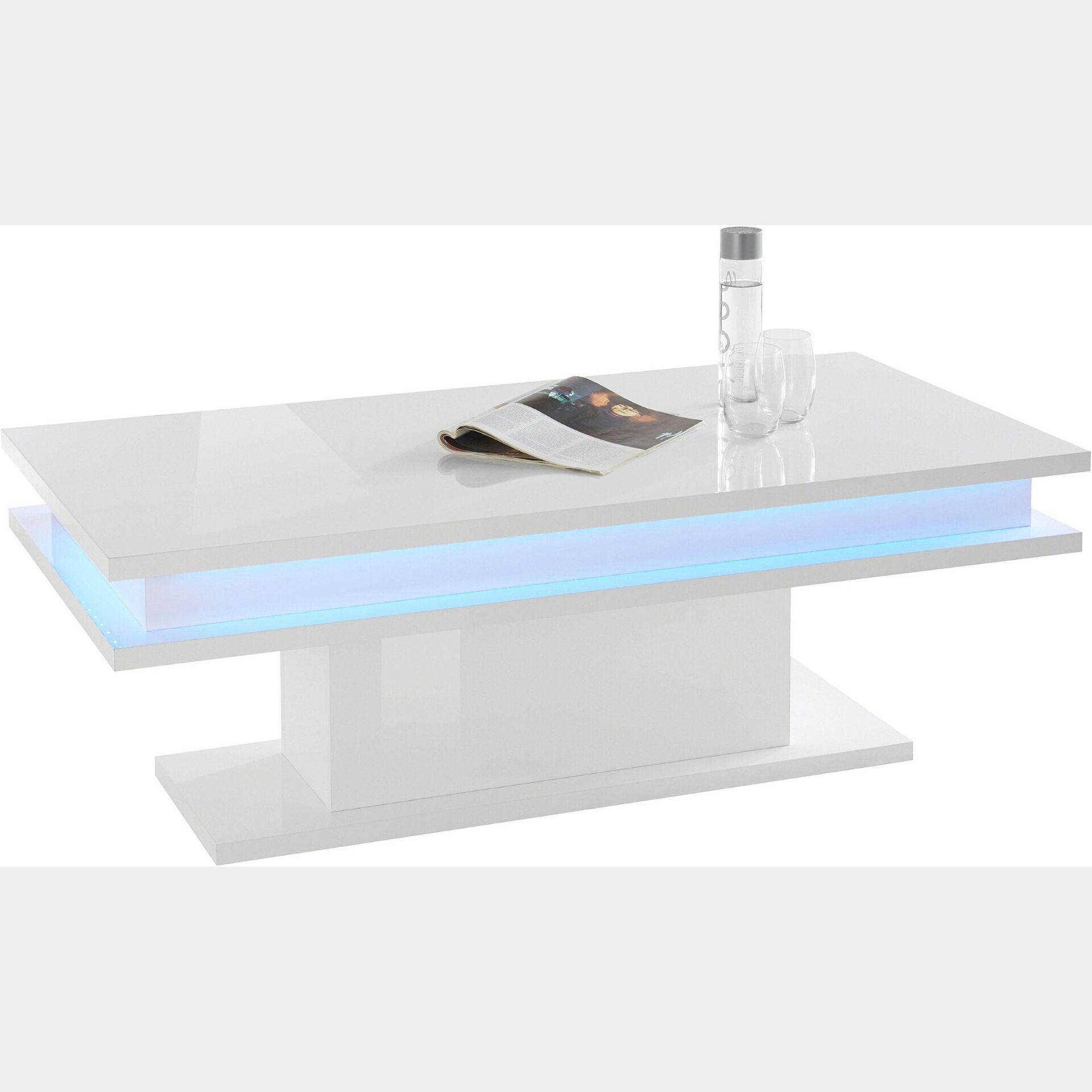 Tavolino da caffè con luce led, finitura Bianco lucido