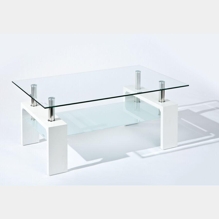 Alva è un bellissimo tavolino da caffè dal design moderno, con telaio metallico cromato e una sfaccettatura piana in vetro temperato.