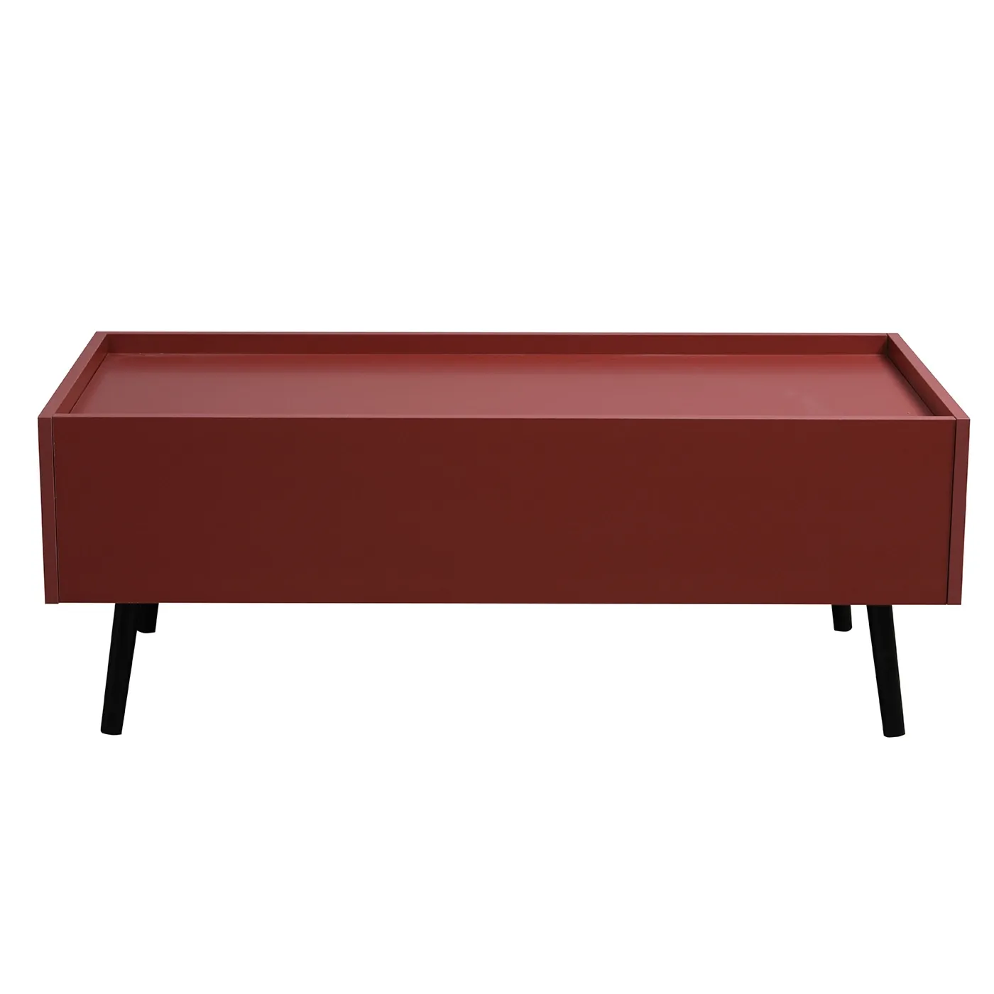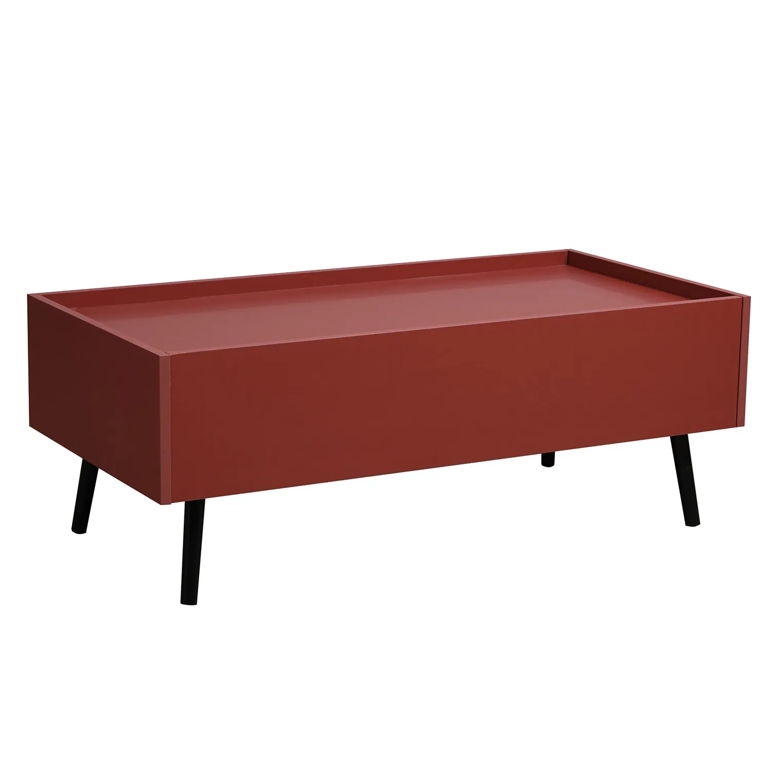 Il tavolino presenta un design lineare e semplice, valorizzato da piedini a contrasto neri. L'assenza di maniglie a vista e la caratteristica tinta rossa assicurano un complemento d'arredo elegante e ricercato, che ben si adatta a living minimal e moderni.