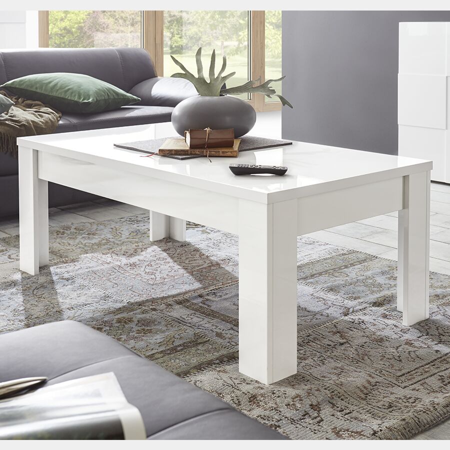 Tavolino da salotto, Mod. Fumo Miss moderno e di design, linee pulite, ampie e robuste superfici, e in finitura bianco lucido laccato, lavorato con geometriche forme per creare un movimento sinuoso.