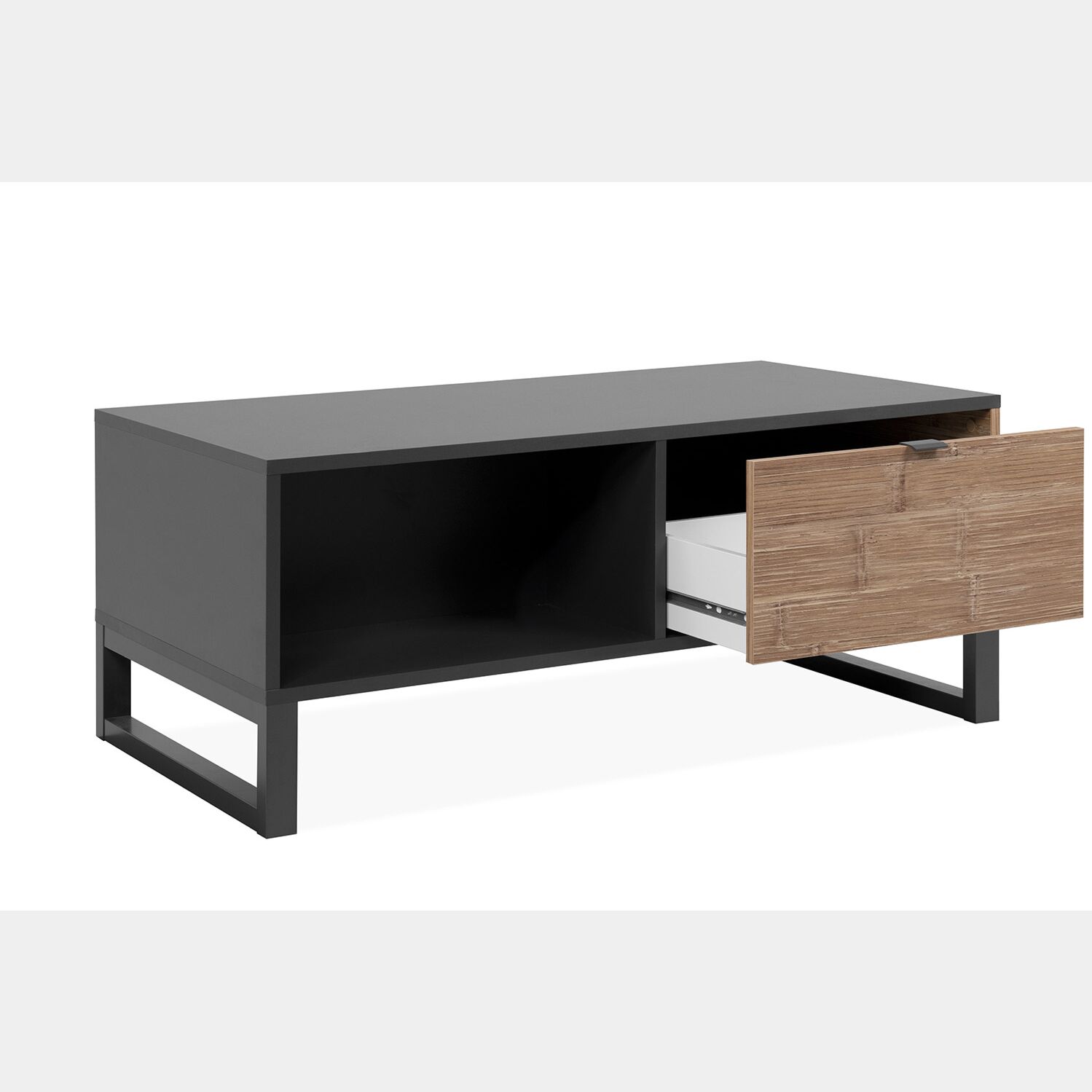 Tavolino scontato per soggiorno nordico in finitura antracite con cassetto bamboo