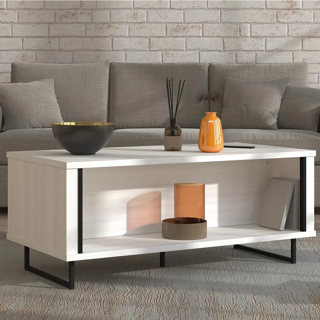 Tavolino soggiorno Bianco frassino con gambe in metallo