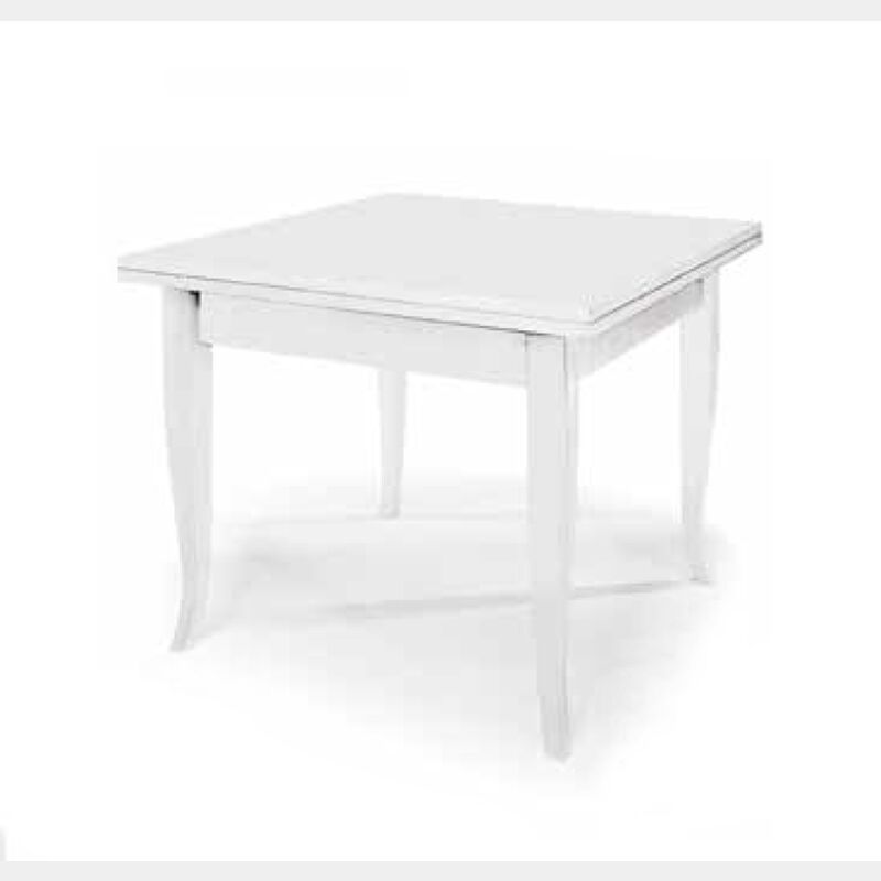 Tavolo 80x80 cm in legno, bianco opaco, arte povera - apertura a libro