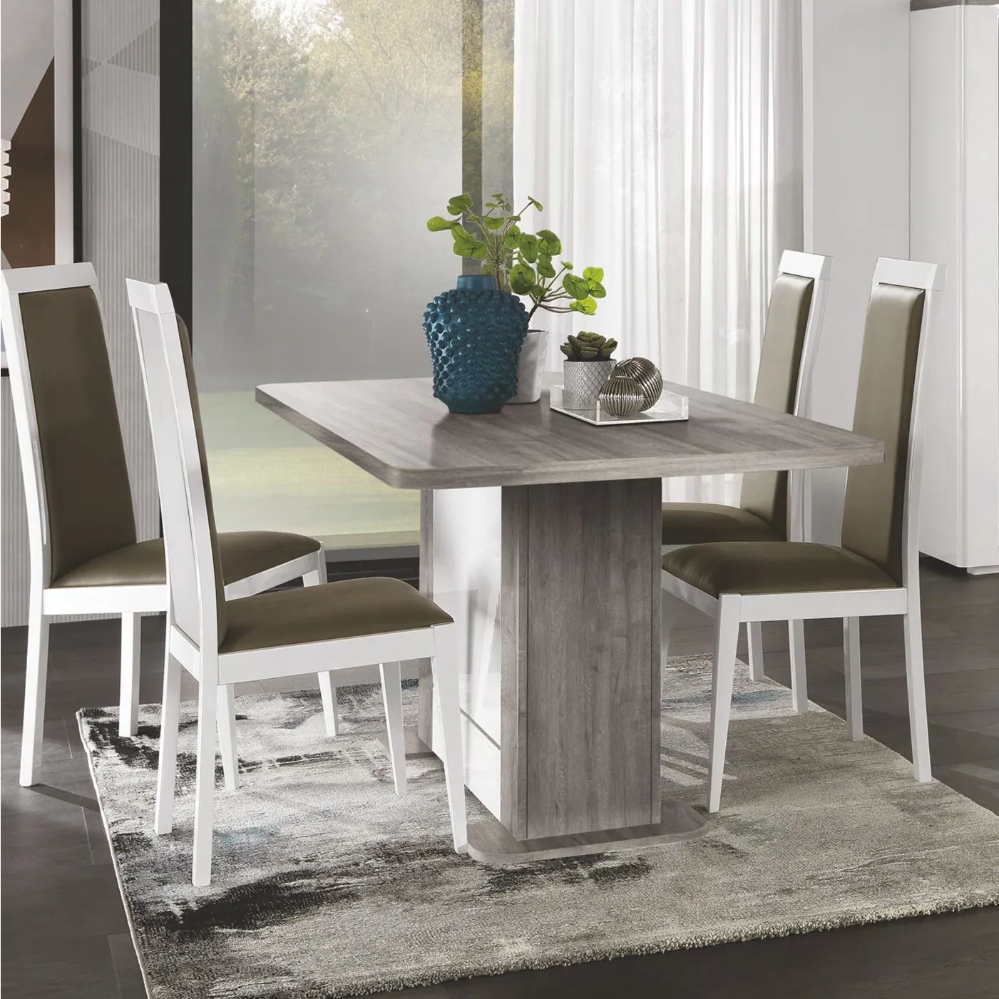 Nuovo tavolo allungabile in finiture Rovere Adamello e Bianco laccato lucido a un prezzo conveniente.