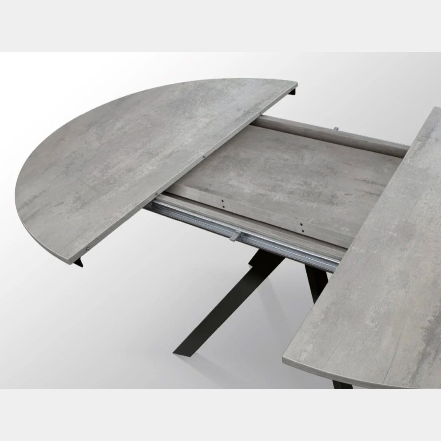 Tavolo allungabile finitura cemento, con base in metallo colore nero