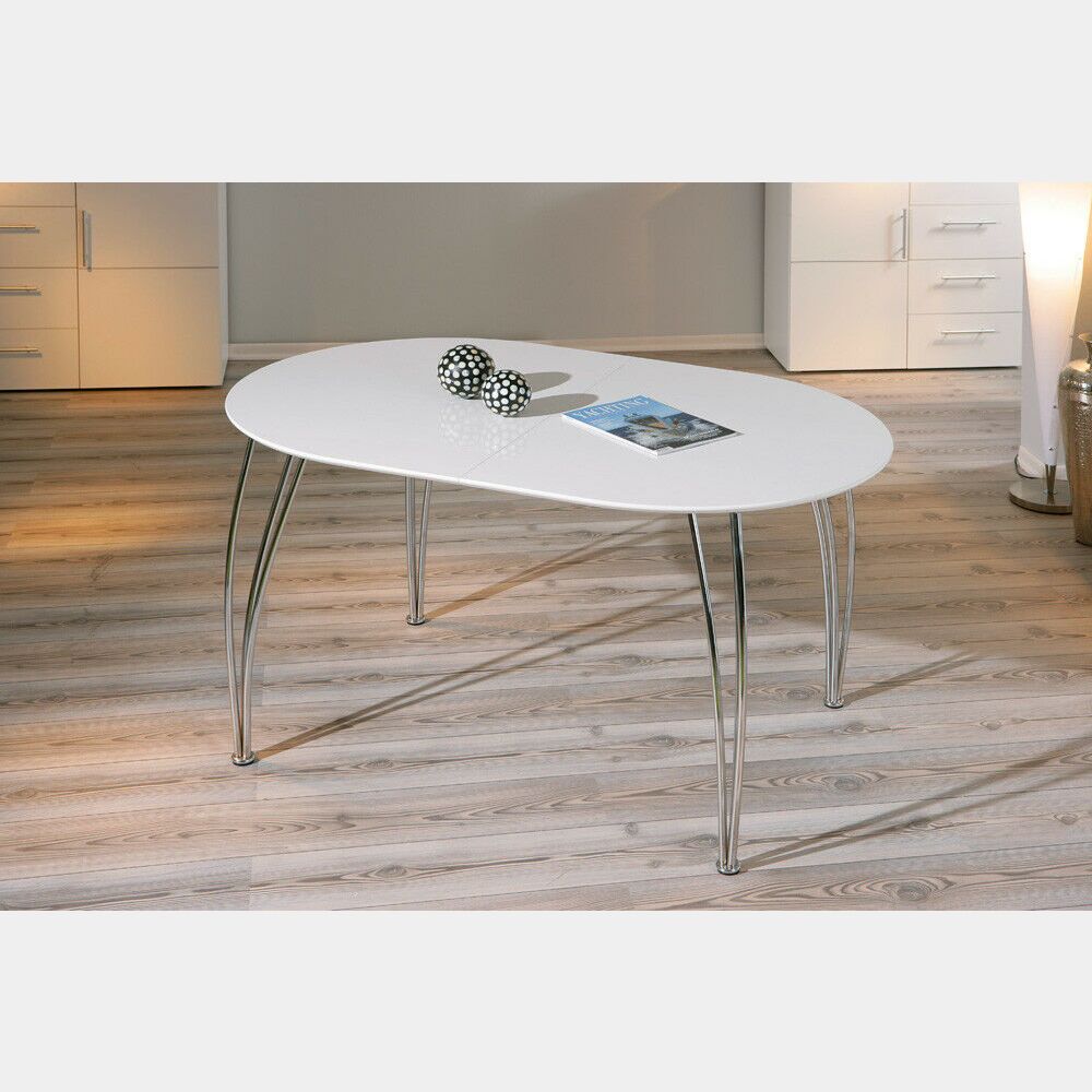 Tavolo allungabile, in mdf laccato bianco e metallo, 140x90 cm