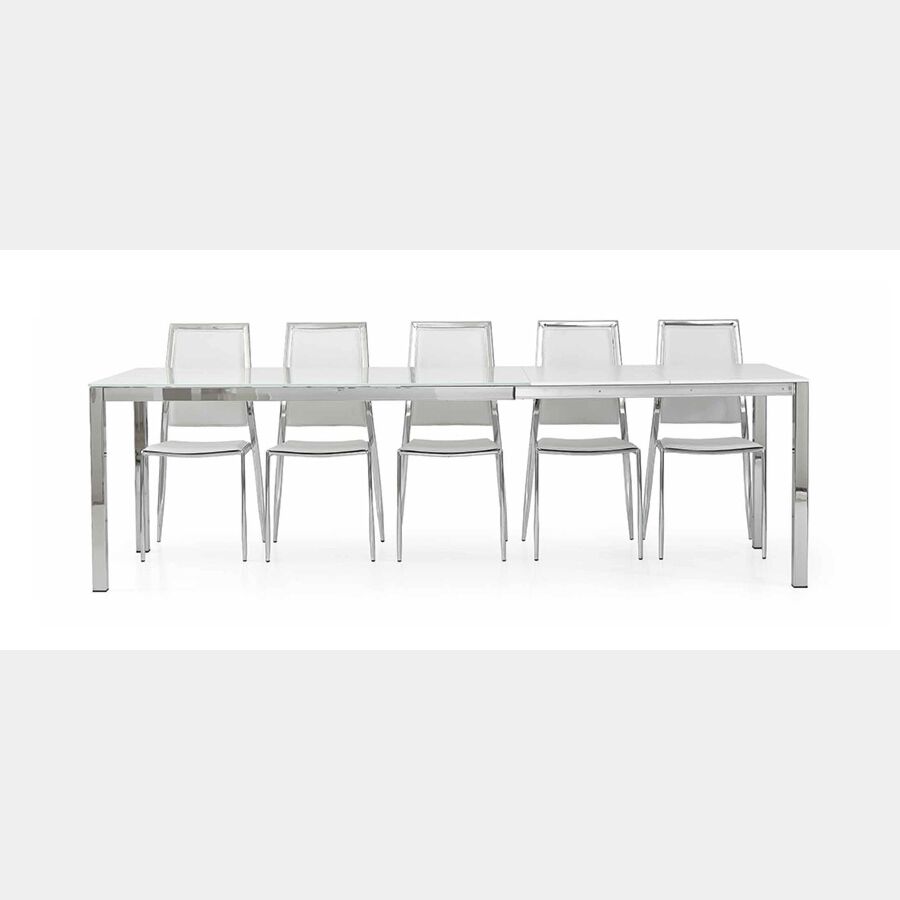 Splendido tavolo con struttura in metallo e piano in vetro allungabile: comodo, ottimo rapporto qualità /prezzo, apertura con binario.