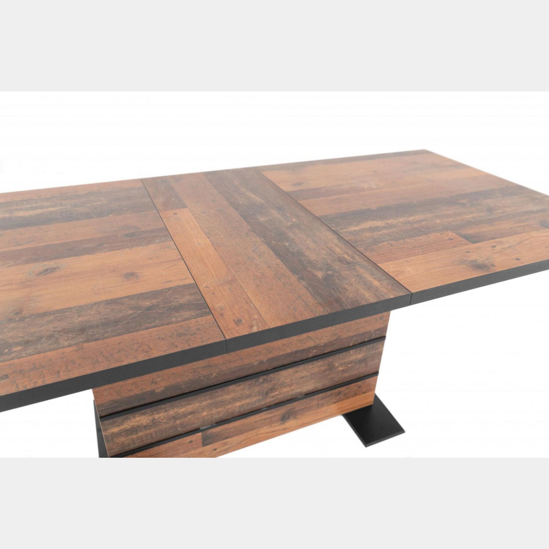 Tavolo con allunga di 40 cm in finitura castagno. Questo tavolo semplice ma di impatto, grazie alle sue sfumature, dona al proprio ufficio o cucina un tocco personale. L'allunga può essere riposta all'interno.