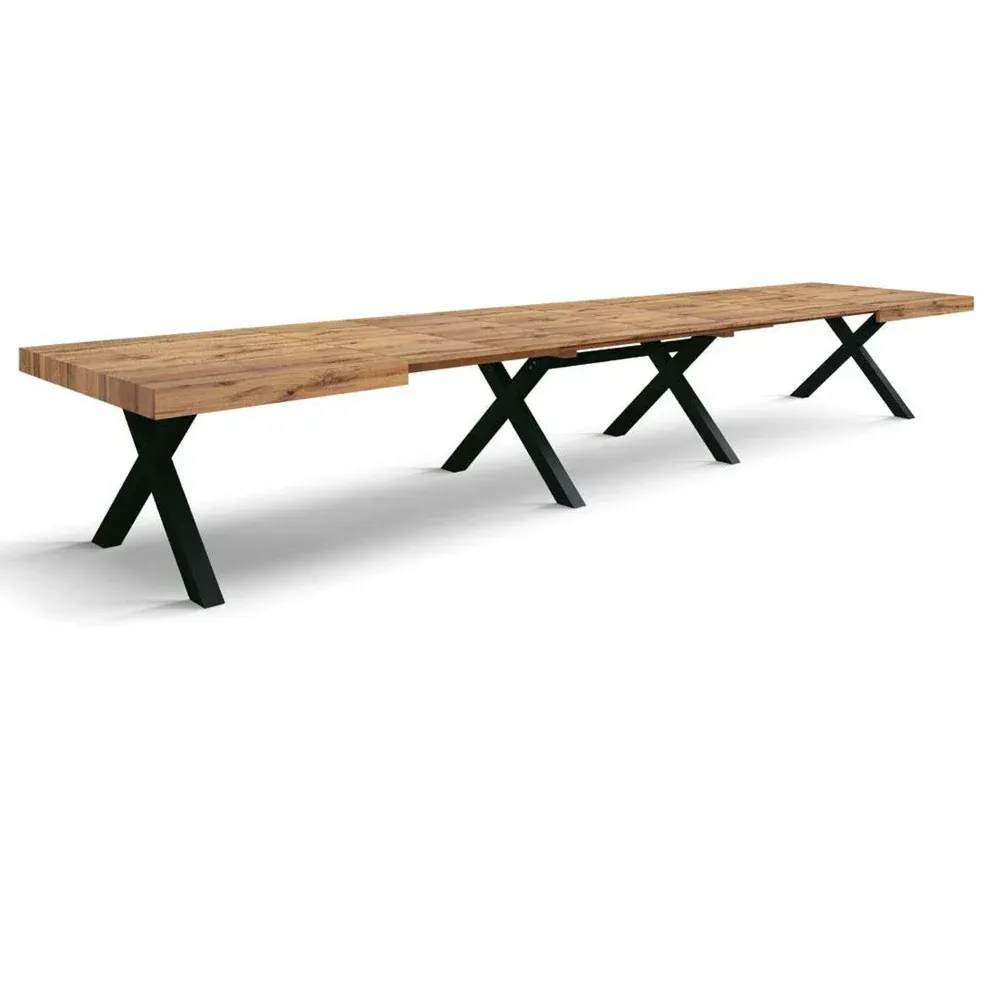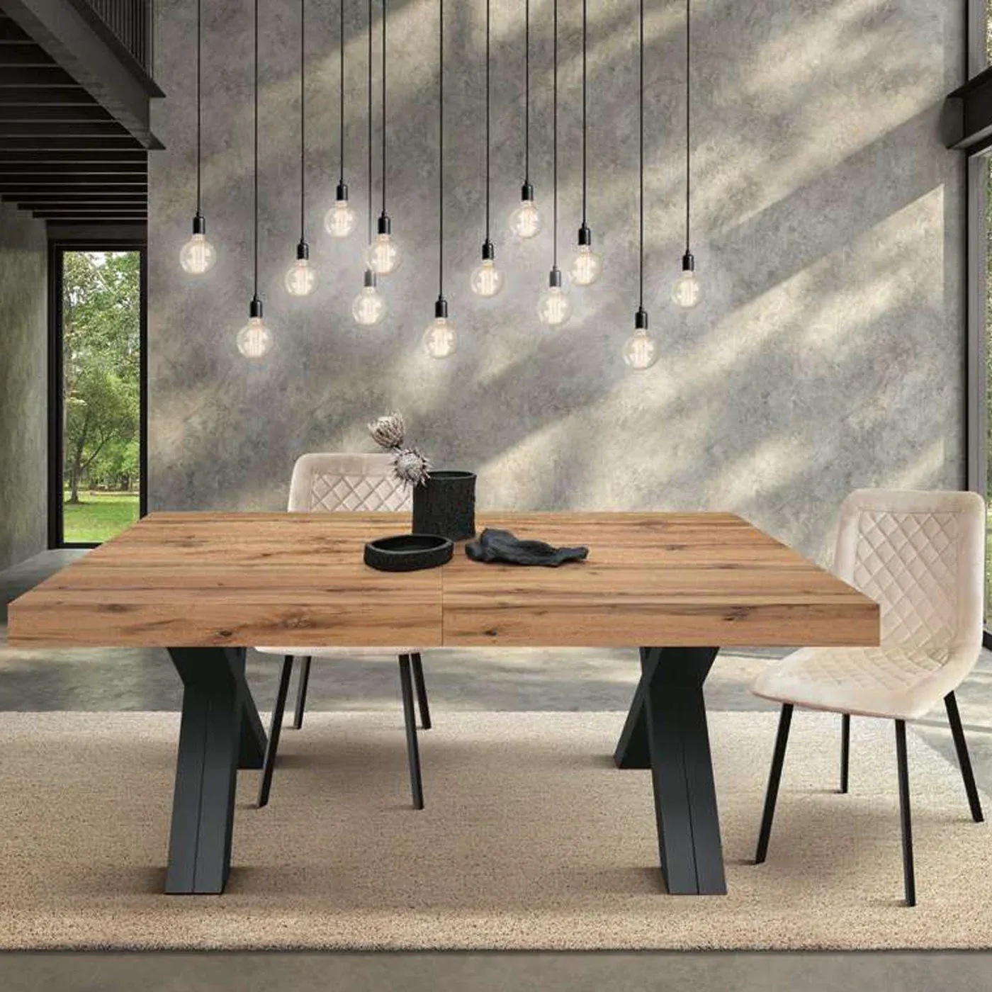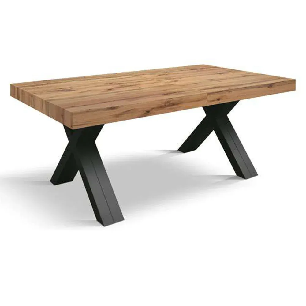 Tavolo allungabile con base in MDF rivestita colore nero e piano in nobilitato finitura Rovere Rustico con 6 allunghe interne da cm. 50.