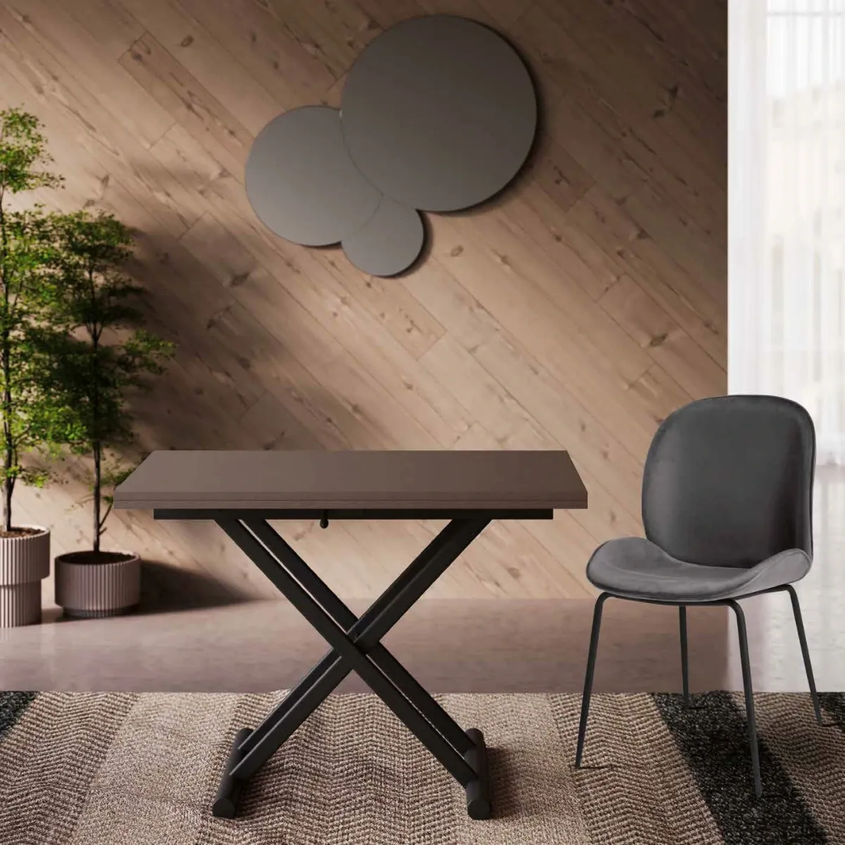 Il tavolo è proposto in finitura Moka, tinta intensa di grande tendenza che crea un netto contrasto con colori chiari, sono disponibili numerose altre finiture materiche o tinte unite, selezionabili tramite configuratore.