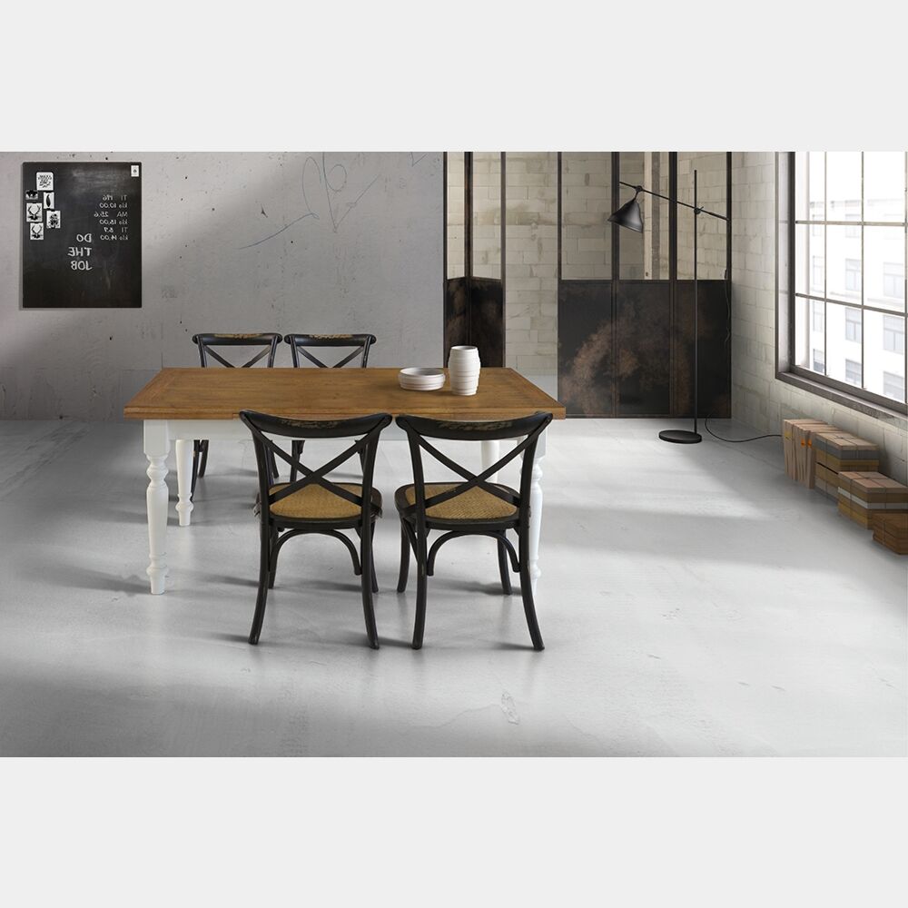 Tavolo con piano in rovere, e gambe tornite bianco opaco