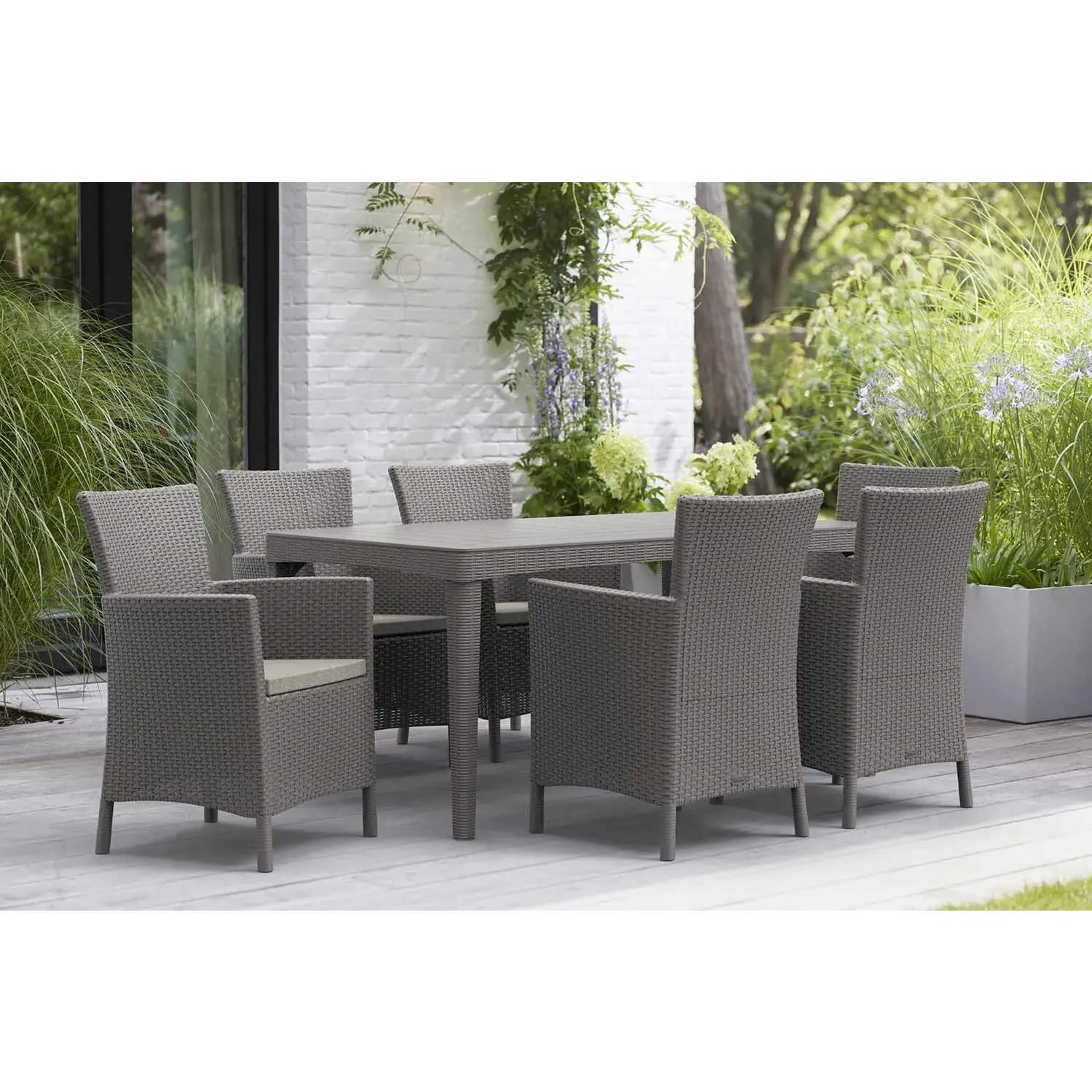 Tavolo da giardino in prolipropilene effetto rattan, 160x74x90 h cm, color Cappuccino