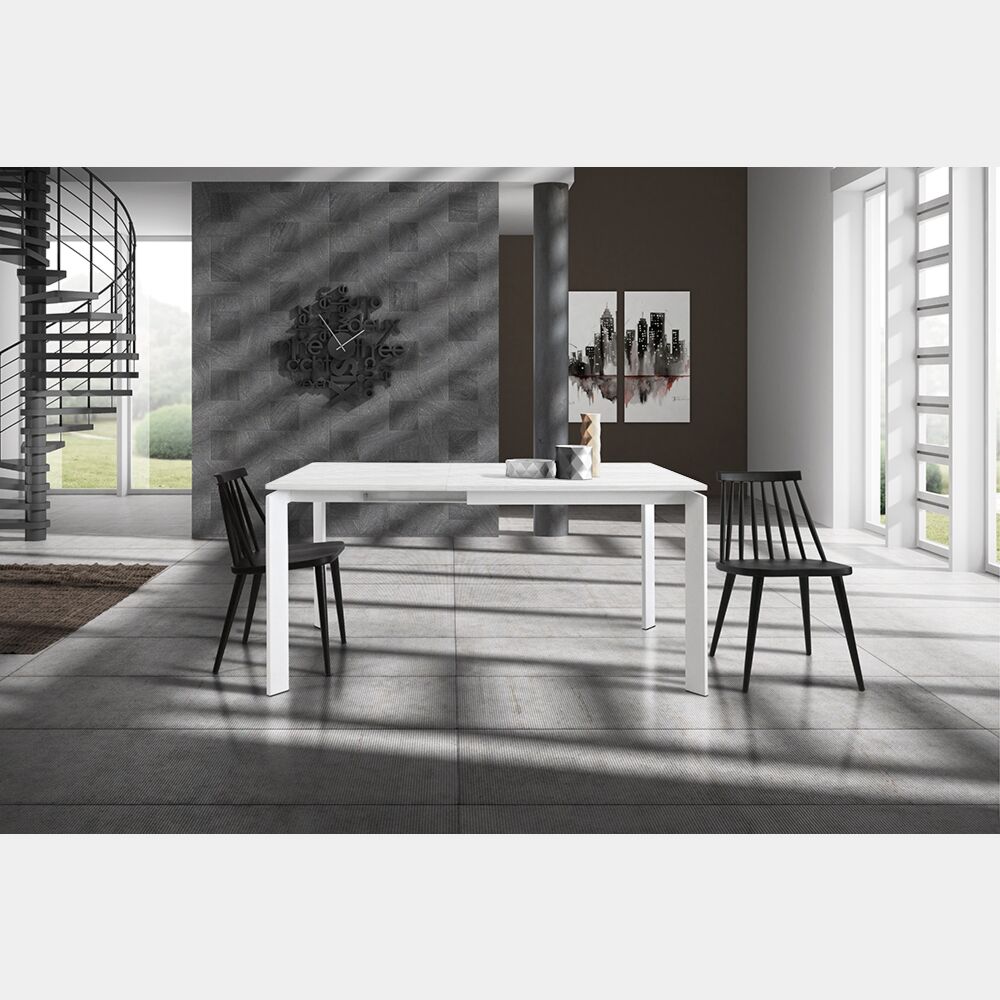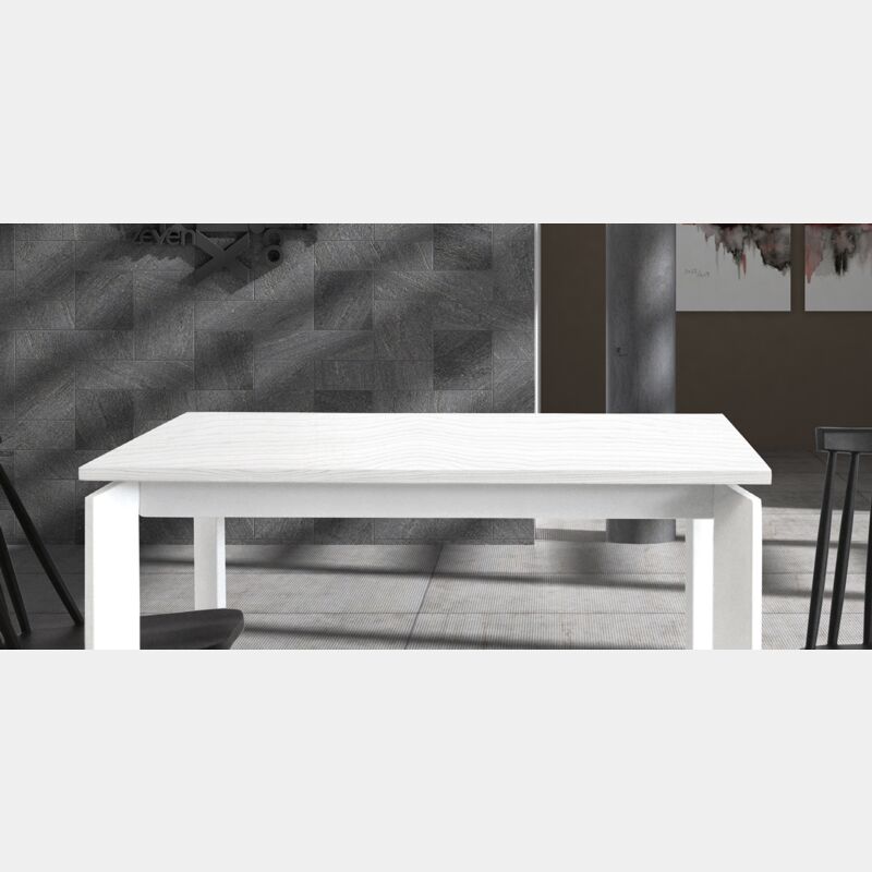 Il piano e le gambe bianche doneranno lucentezza alla sala. La particolarità del tavolo è l'allunga disposta al centro del tavolo. L'allunga da 60 cm porteranno il tavolo a 150 cm.