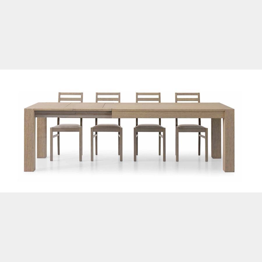 Tavolo di design in legno, finitura rovere seppia spazzolato, apertura con binario