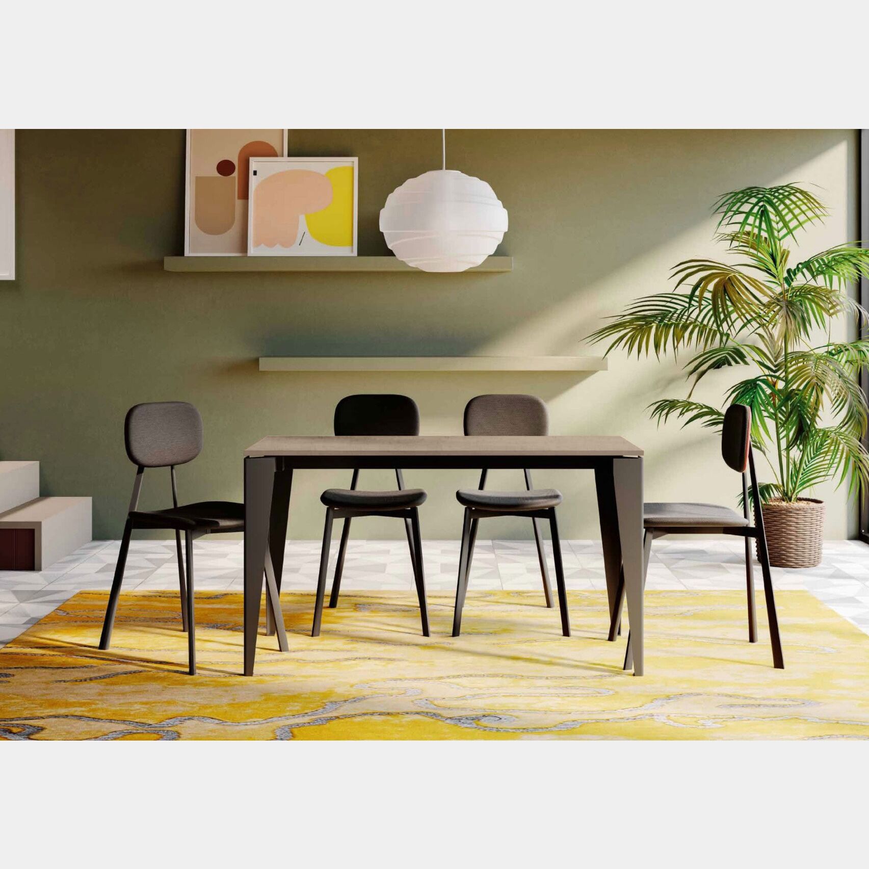 Tavolo allungabile moderno e dal design semplice e innovativo color argilla con gambe nere. Un tavolo perfetto per rendere la vostra sala da pranzo o la vostra cucina di tendenza e unica.
