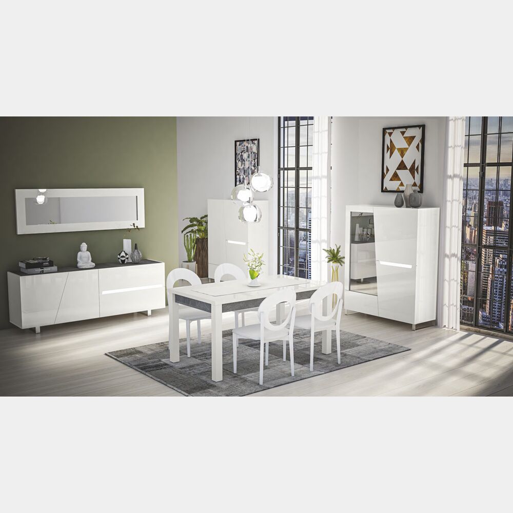Tavolo fisso L.160, moderno, bianco lucido e grigio