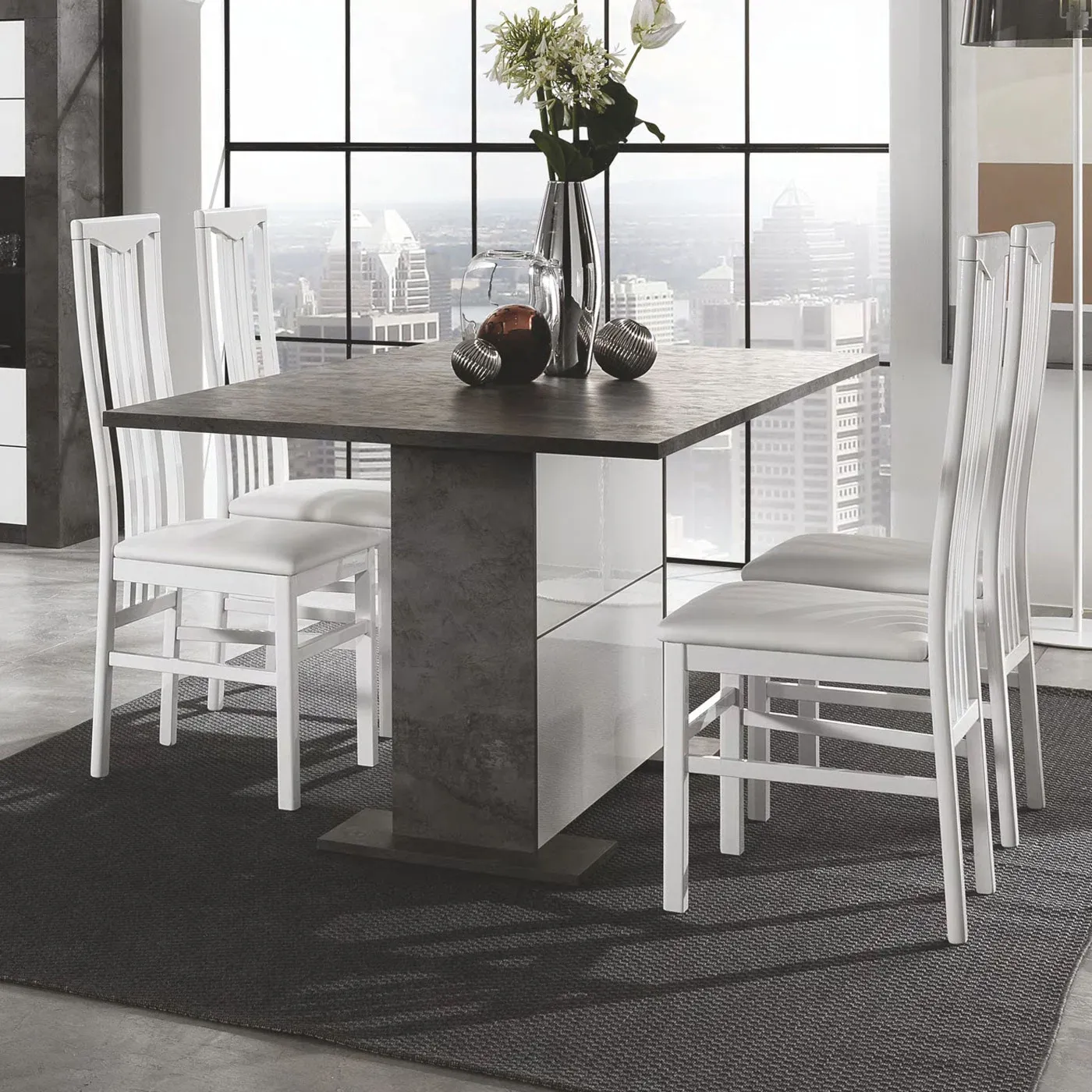 Nuovo tavolo disponibile in due misure in finitura Ossido e Bianco lucido serigrafato. Come si può notare dalle foto, il mobile ha una grafica molto particolare che rende più vivace o la tua cucina o la tua zona living o il tuo soggiorno.