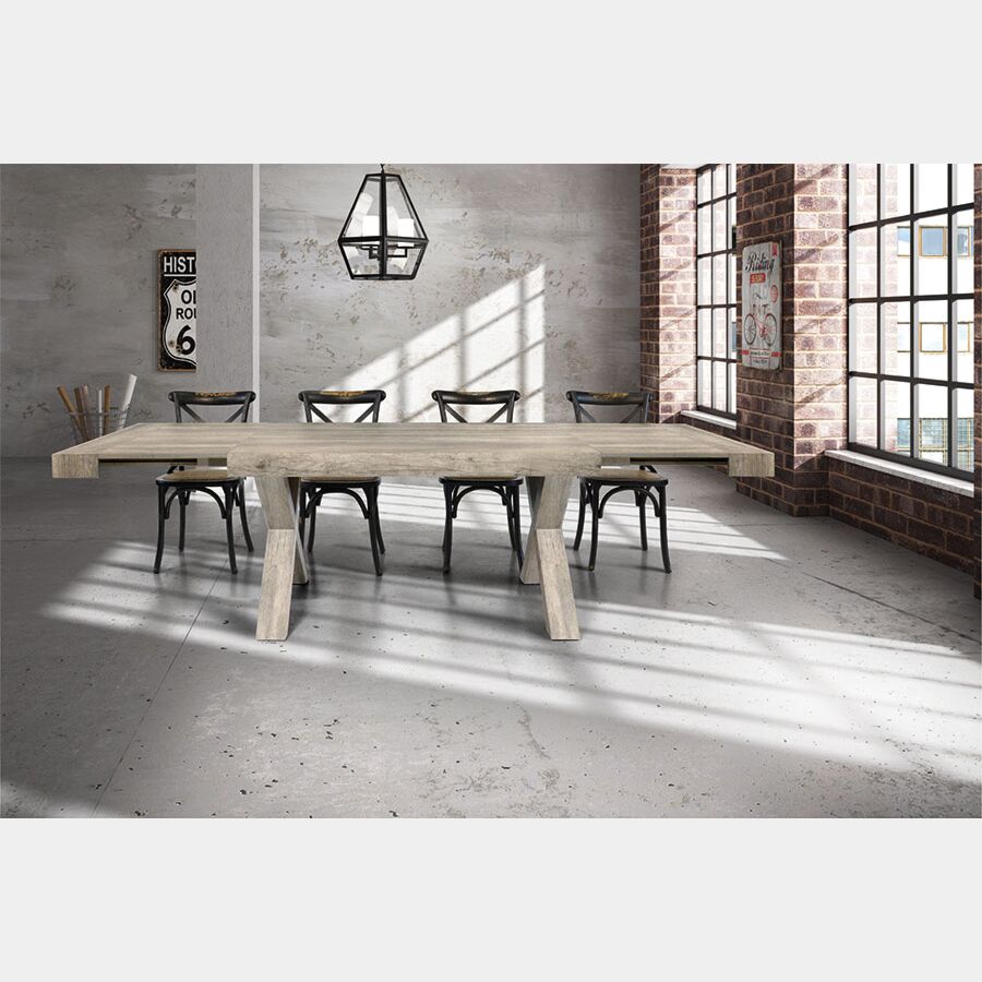Tavolo in finitura abete spazzolato con 2 allunghe da 50 cm