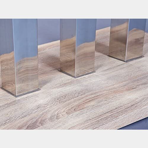 Suggestivo tavolo in mdf finitura rovere e metallo cromato, di impatto le linee e il design, questo tavolo interpreta al meglio la zona living.