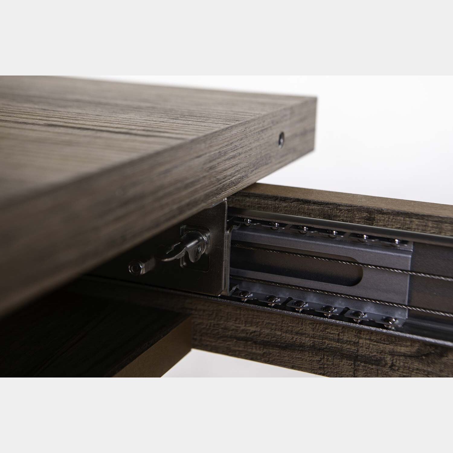 Tavolo moderno stile Industry in finitura Rovere invecchiato con gambe in metallo in finitura antracite, presenta un'allunga