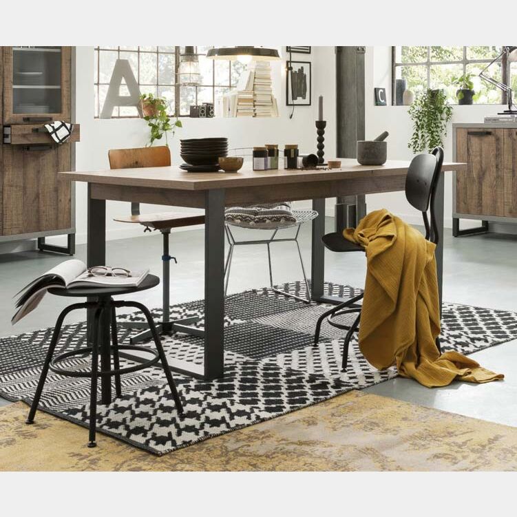 Tavolo Industry in finitura Rovere invecchiato con gambe in metallo