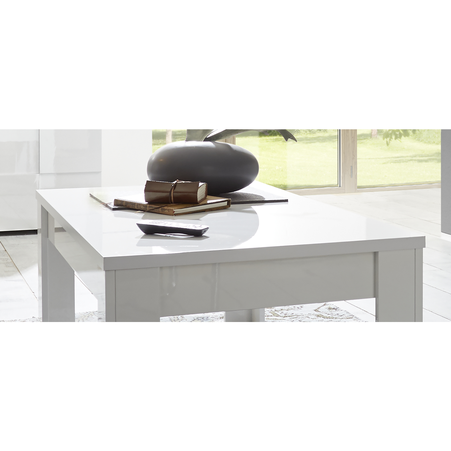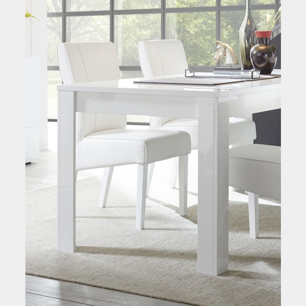 Tavolo moderno e di design, disponibile fisso in due dimensioni, o con allunga, in finitura bianco lucido laccato.