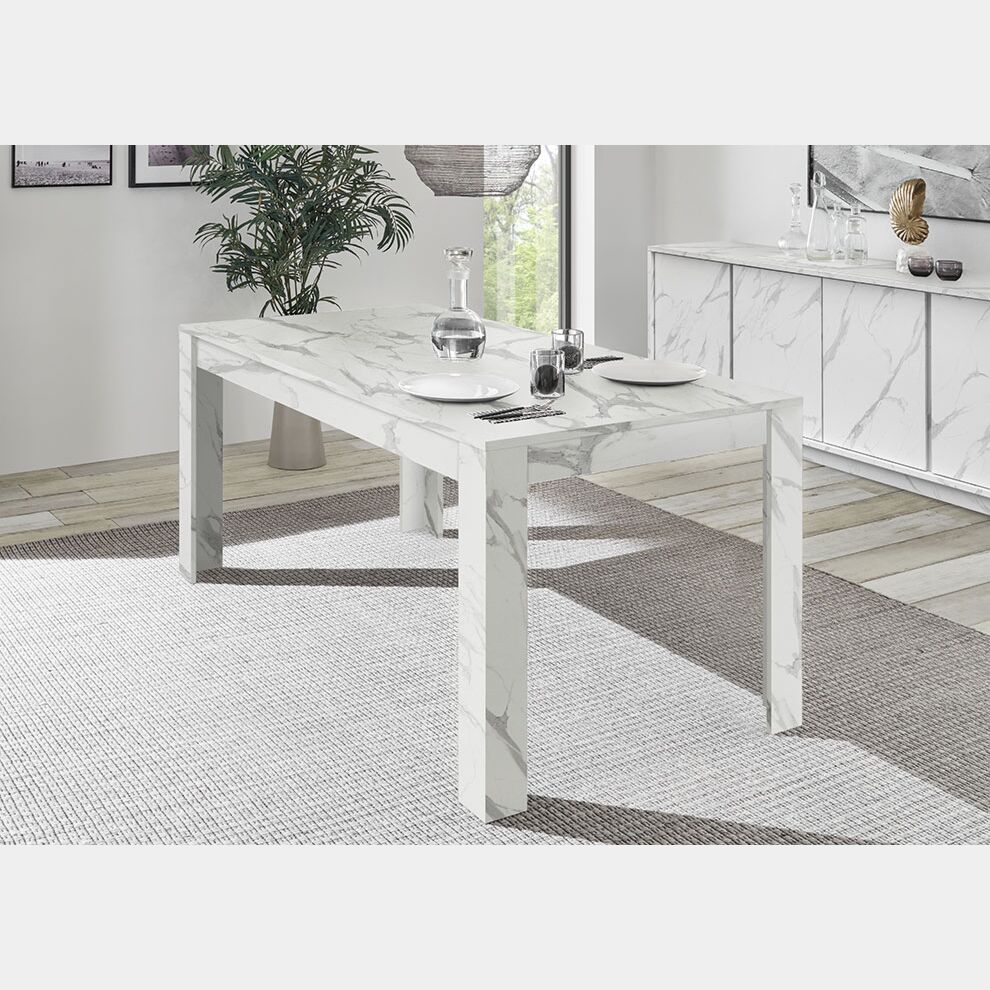 Tavolo moderno allungabile, 137x90 cm, finitura effetto Marmo Bianco di Carrara