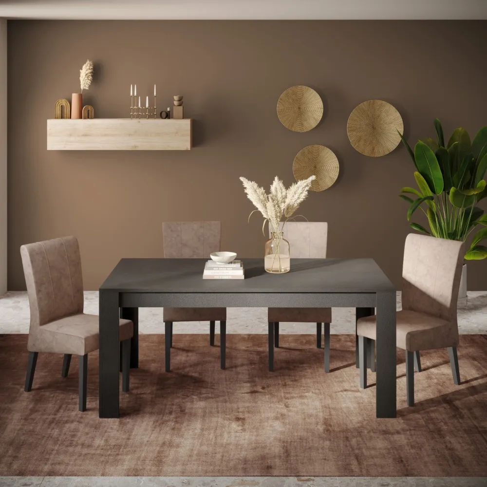Il tavolo è caratterizzato da una finitura scura, il Lava, che ben si adatta ad ambienti dalle tinte neutre, per creare un piacevole contrato.
