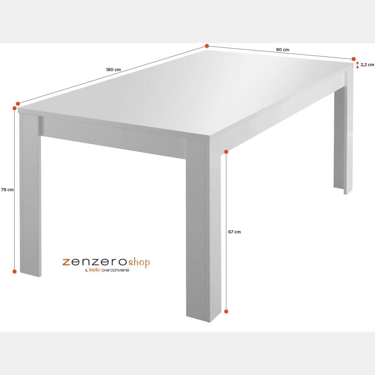 - L.180 H.79 P.90 con possibilità di aggiungere l'allunga (+ L.48 cm)