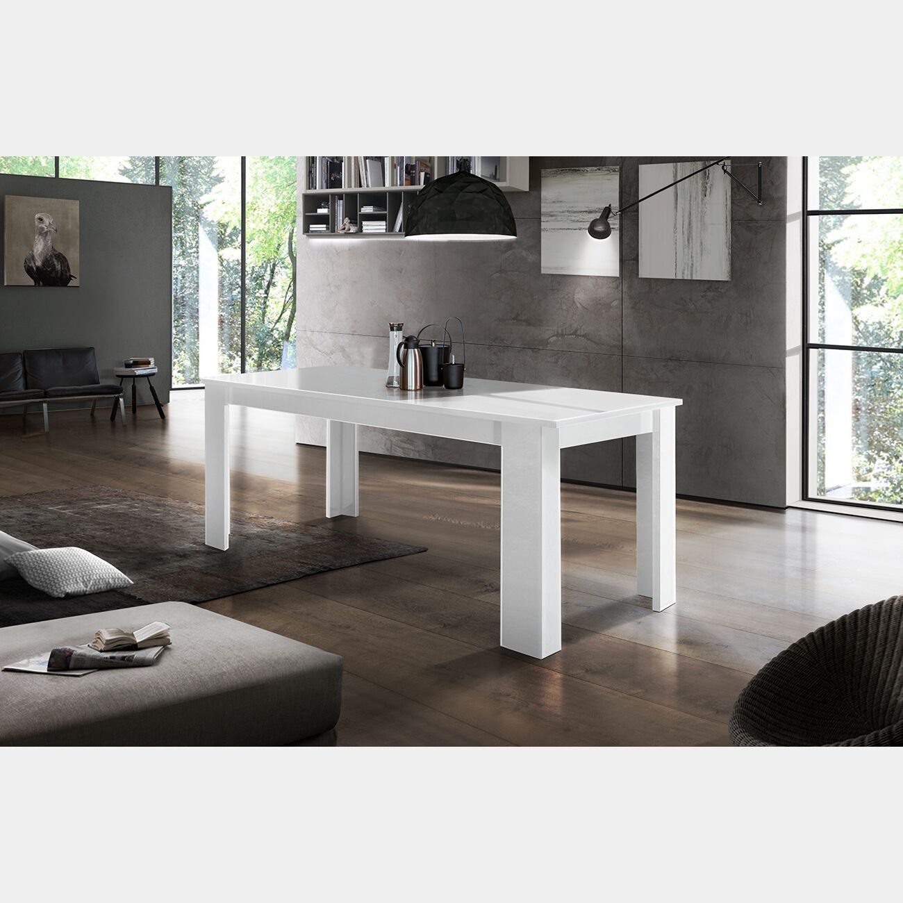 Tavolo allungabile Bianco Lucido L.120 Il tavolo moderno è disponibile in 3 misure diverse, ed ha sia piano che gambe in finitura Bianco Lucido.
