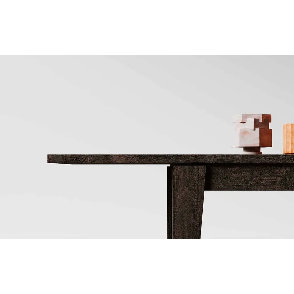 Il tavolo è proposto in Legno bruciato; l'ampio campionario disponibile di finiture materiche consente una completa personalizzazione del tavolo, per assicurare a chiunque il perfetto complemento d'arredo per il proprio ambiente.