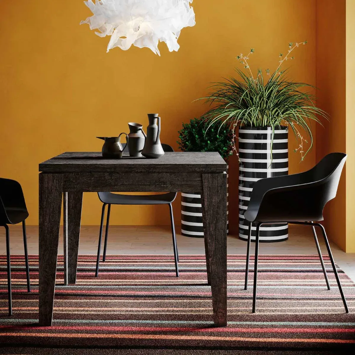 Tavolo moderno quadrato allungabile, finitura Legno bruciato