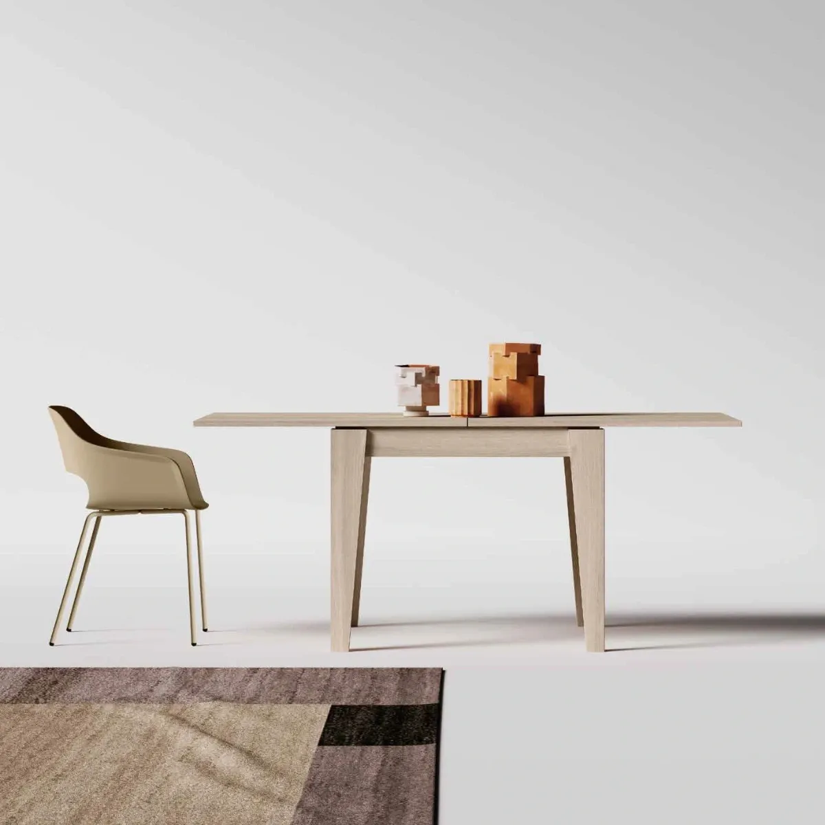 Spazio alla convivialità, anche per un tavolo quadrato! Il tavolo è dotato di allungo, per essere adattato ad ogni spazio della casa ed esteticamente ad ogni proposta di seduta.