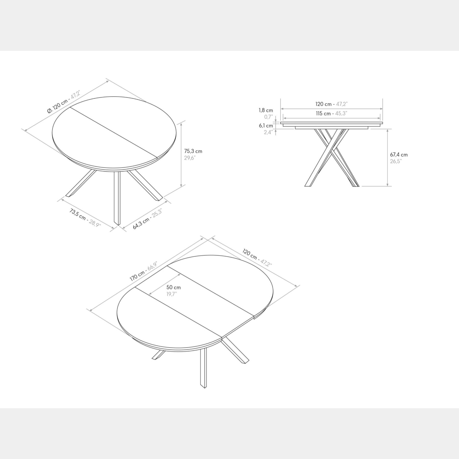 misura chiuso cm. ø. 120 h. 75,5