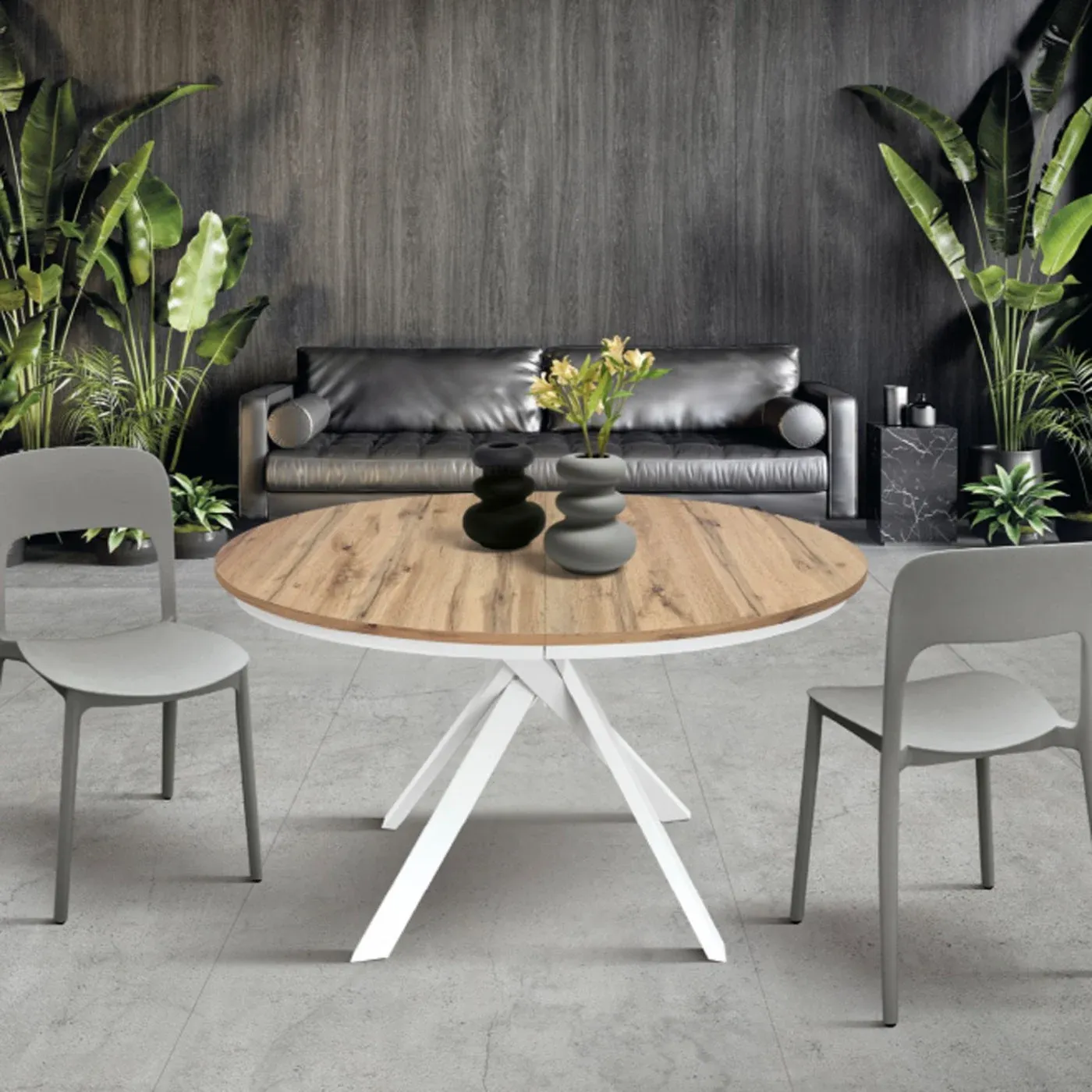 Tavolo rotondo allungabile, finitura Rovere Rustico