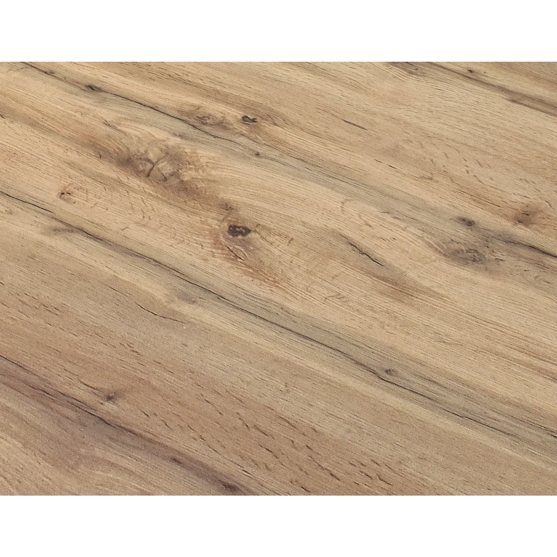 Tavolo moderno di design, robusto e di impatto con base in metallo colore bianco e piano in finitura rovere rustico, con 1 allunga da 50 cm.