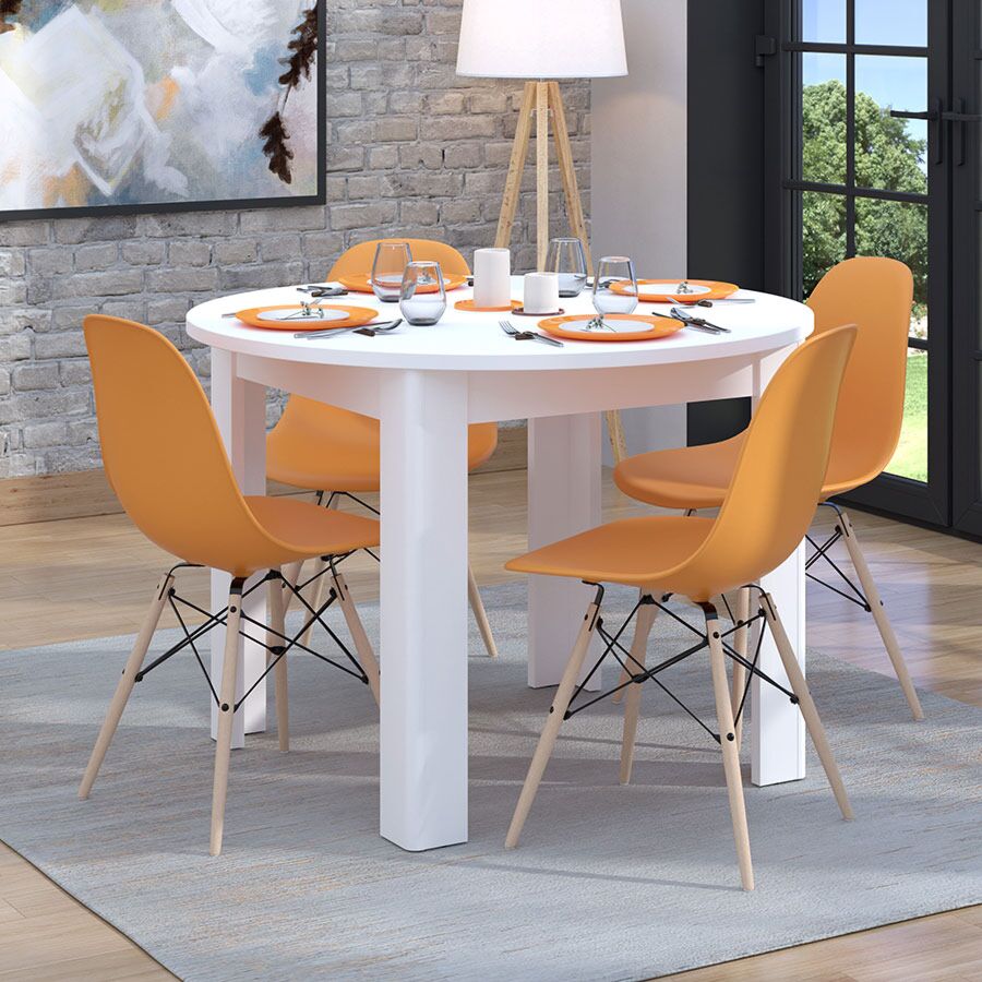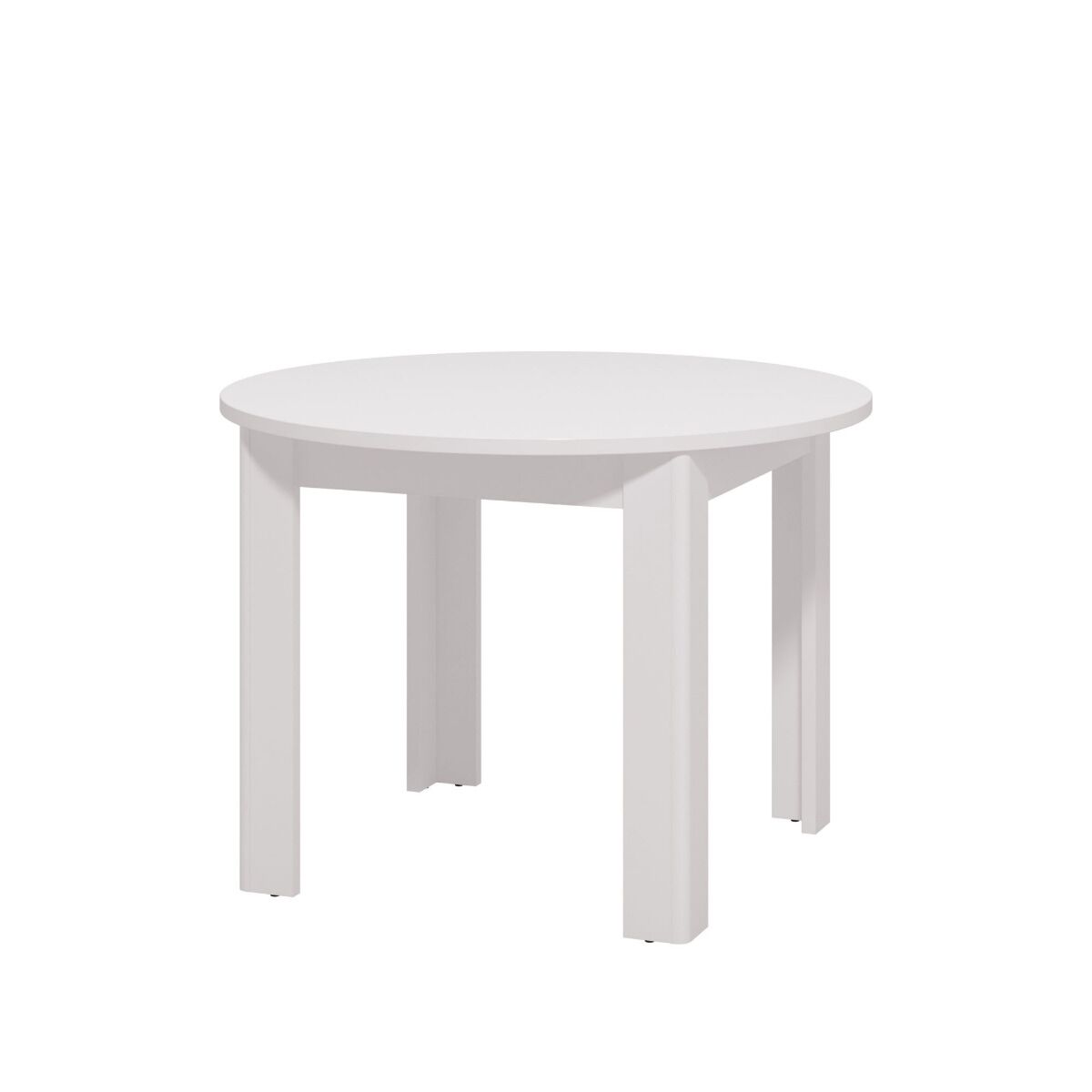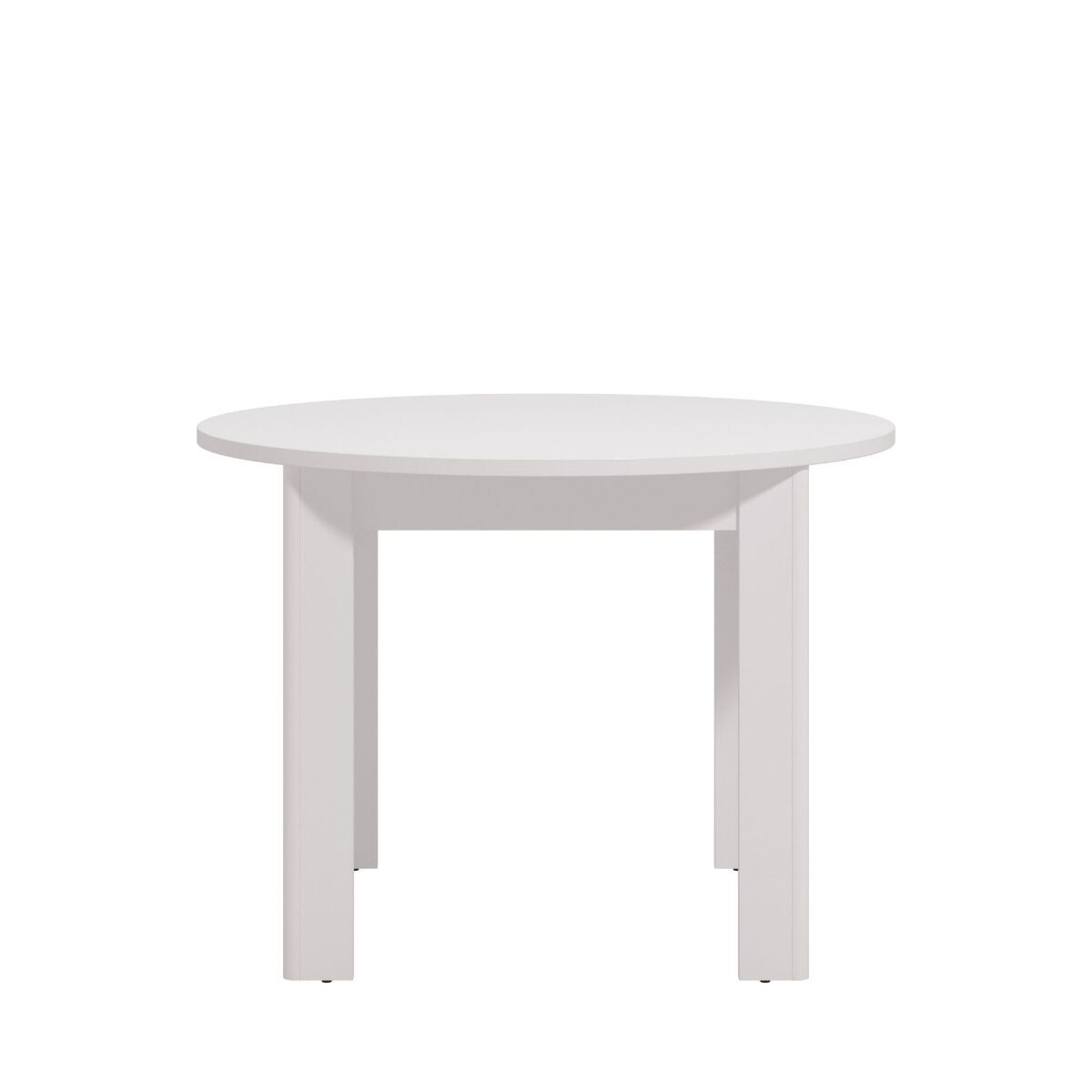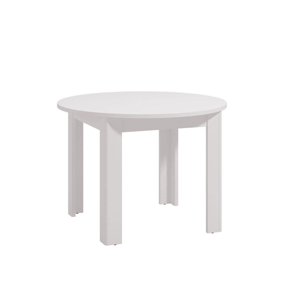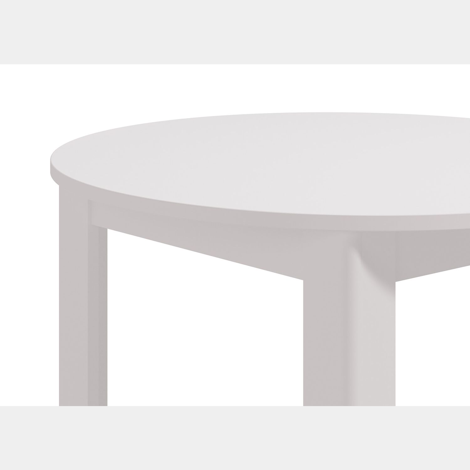 Ideale per soggiorni o cucine di piccole dimensioni il tavolo rotondo risulta la perfetta soluzione d'arredo che coniuga praticità ad estetica, limitando l'ingombro nell'ambiente. Il tavolo presenta una neutra finitura bianca opaco, tinta che si adatta sia a finiture materiche che nobilitate o laccate.