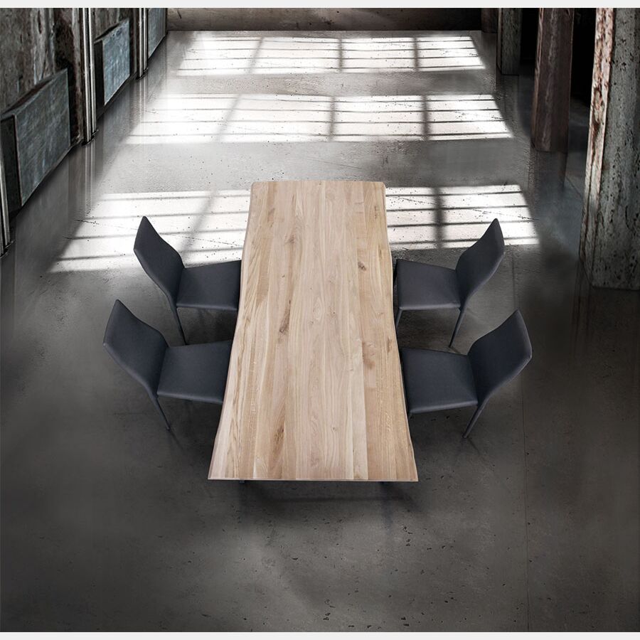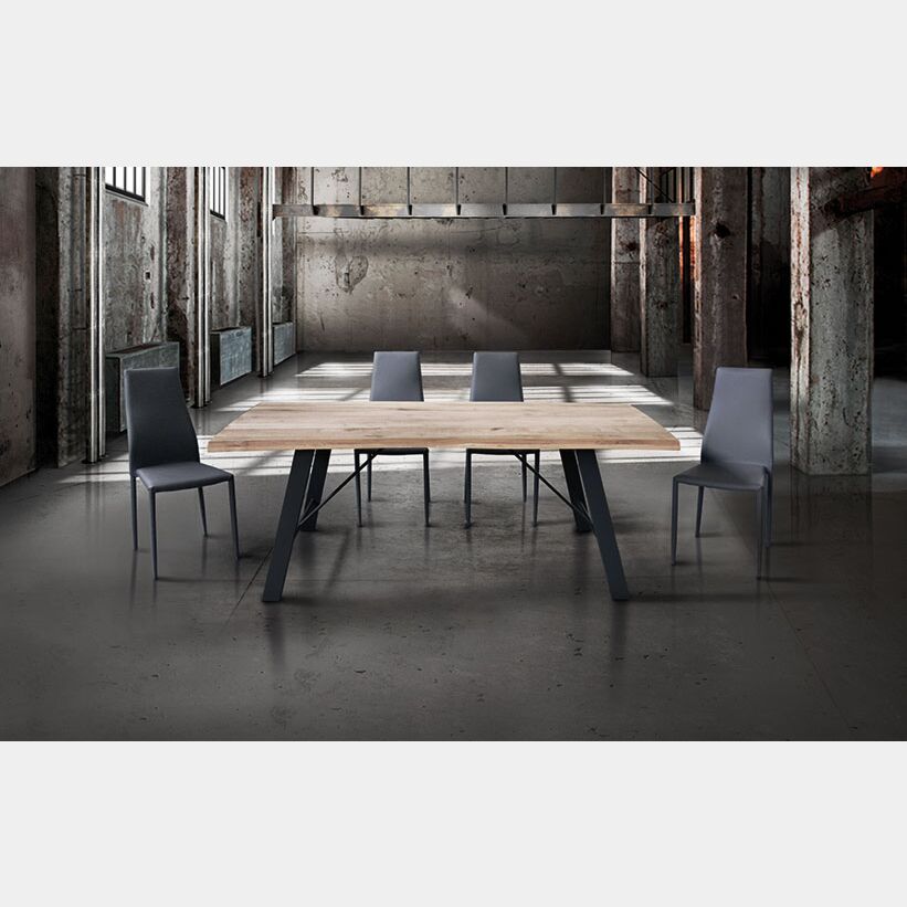 Tavolo Fisso in massello, con nodo aperto. sp. 4cm. Il tavolo moderno scortecciato è disponibile in diverse lunghezze e spessori. In massello con nodo aperto e gambe in ferro nere.Tavolo industrial massiccio e resistente.