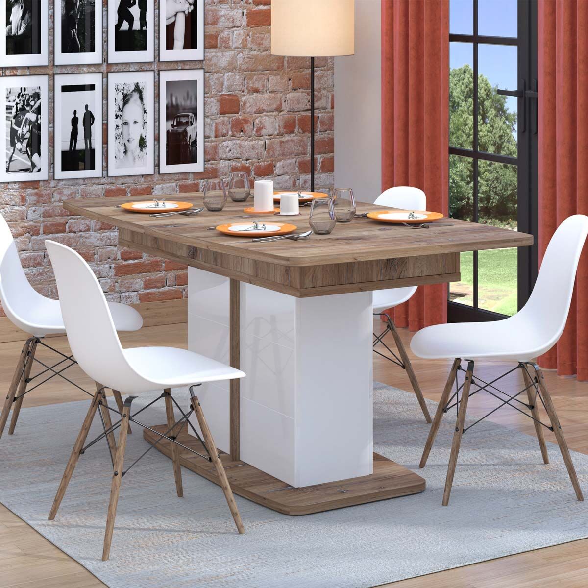 Tavolo soggiorno allungabile, finitura Bianco e Quercia