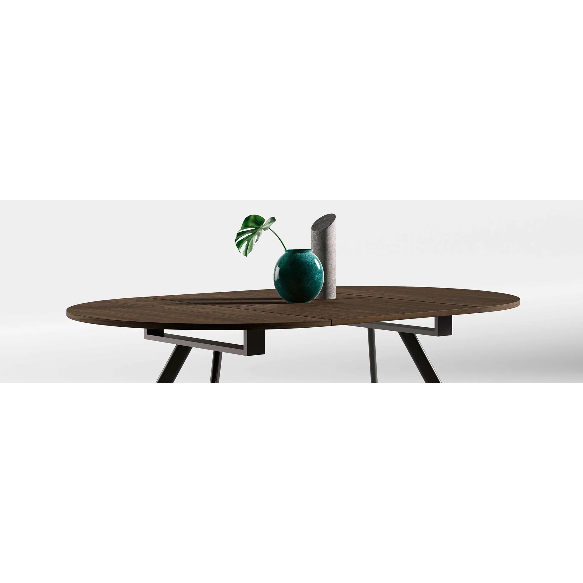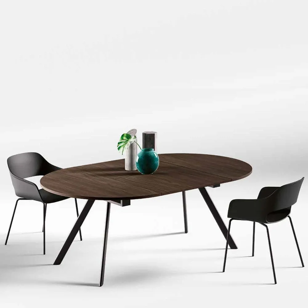 Tavolo tondo moderno allungabile, finitura Noce moro