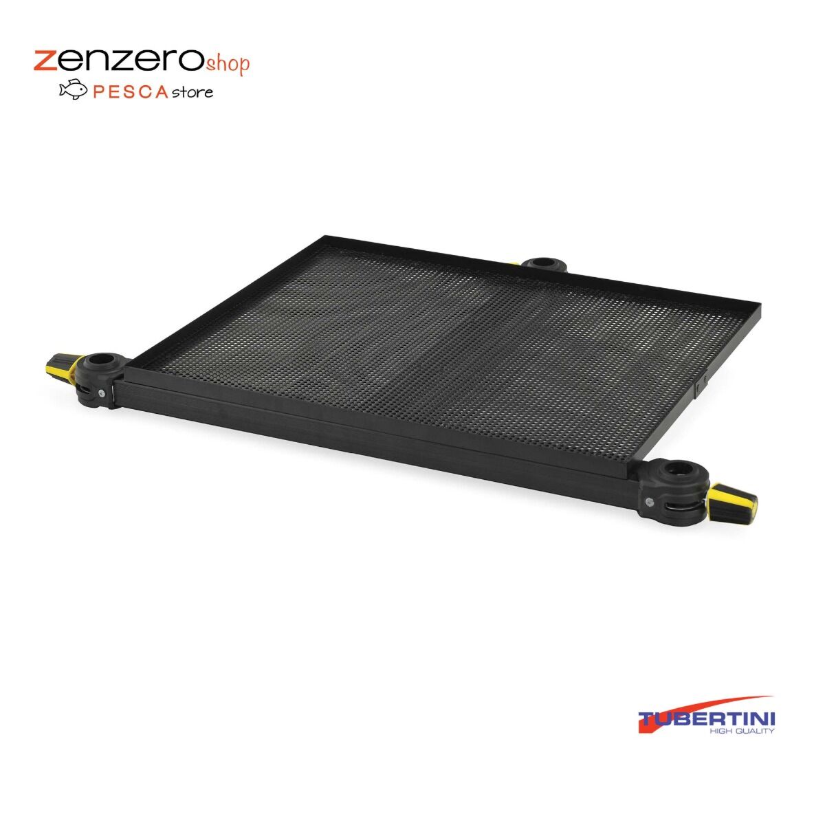 Pedana laterale di grande dimensione studiata per ospitare almeno quattro secchi da 8 litri e varie scatole porta esche. Il telaio è realizzato con tubi di grosse dimensioni mentre i serraggi mobili a 180° agevolano il posizionamento. Risulta molto stabile e rigida anche in caso di fissaggio dell'ombrellone ad un piede della stessa.